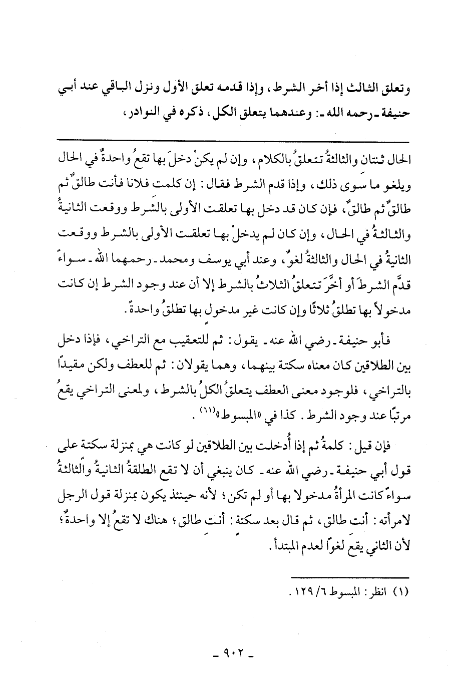 فأبو حنيفة- رضي الله عنه- يقول: ثم للتعقيب مع التراخي، فإذا دخل بين الطلاقين كان معناه سكتة بينهما، وهما يقولان: ثم للعطف ولكن مقيدا بالتراخي، فلوجود معنى العطف يتعلق الكل بالشرط، ولمعنى التراخي يقع مرتبا عند وجود الشرط. كذا في "المبسوط".