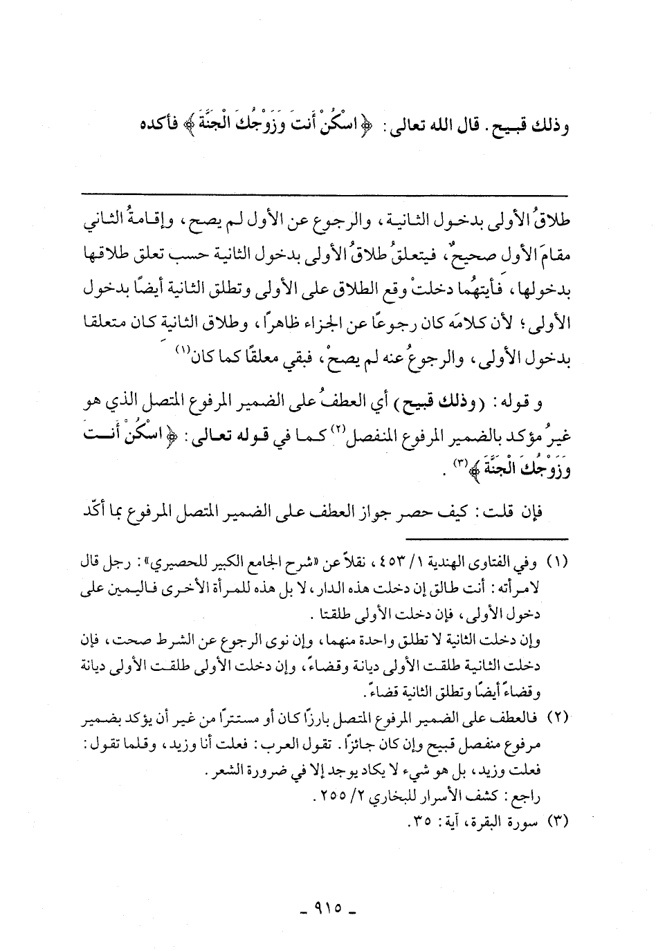 وقوله: (وذلك قبيح) أي العطف على الضمير المرفوع المتصل الذي هو غير مؤكد بالضمير المرفوع المنفصل كما في قوله تعالى:} اسْكُنْ أَنتَ وَزَوْجُكَ الجَنَّةَ {.