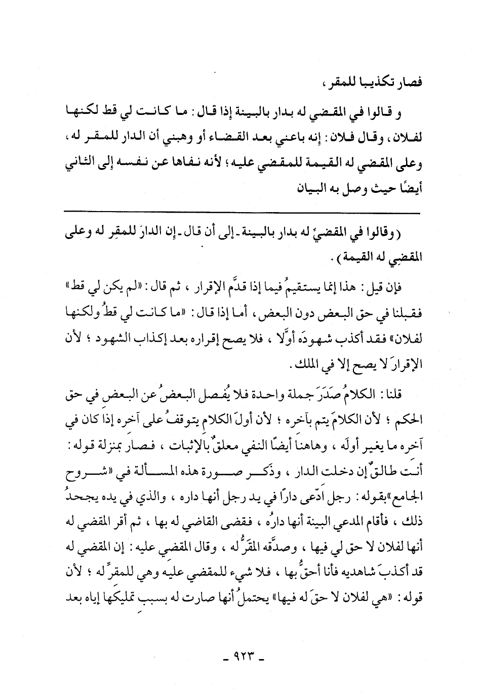 فإن قيل: هذا إنما يستقيم فيما إذا قدم الإقرار، ثم قال: "لم يكن لي قط" فقبلنا في حق البعض دون البعض، أما إذا قال: " ما كانت لي قط ولكنها لفلان" فقد أكذب شهوده أولا، فلا يصح إقراره بعد إكذاب الشهود؛ لأن الإقرار لا يصح إلا في الملك.