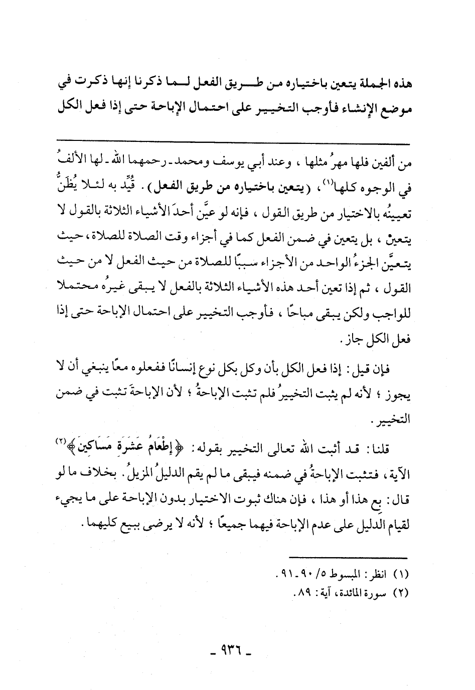 قلنا: قد أثبت الله تعالى التخيير بقوله:} إطْعَامُ عَشَرَةِ مَسَاكِينَ {الآية، فتثبت الإباحة في ضمنه فيبقى ما لم يقم الدليل المزيل. بخلاف ما لو قال: بع هذا أو هذا، فإن هناك ثبوت الاختيار بدون الإباحة على ما يجئ لقيام الدليل على عدم الإباحة فيهما جميعا؛ لأنه لا يرضي ببيع كليهما.