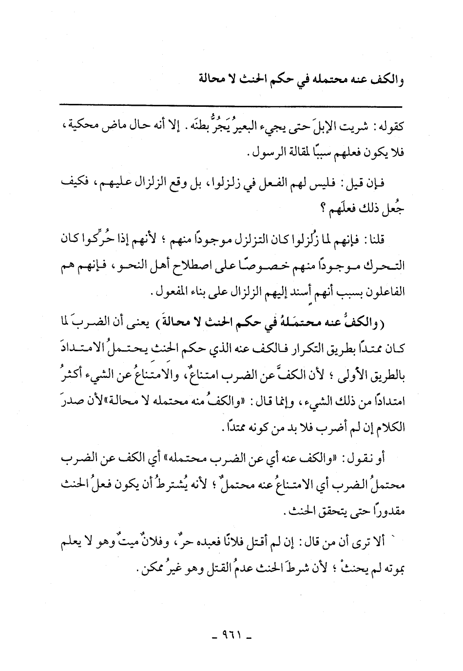 أو نقول: "والكف عنه أي عن الضرب محتمله" أي الكف عن الضرب محتمل الضرب أي الامتناع عنه محتمل؛ لأنه يشترط أن يكون فعل الحنق مقدورا حتى يتحقق الحنث.