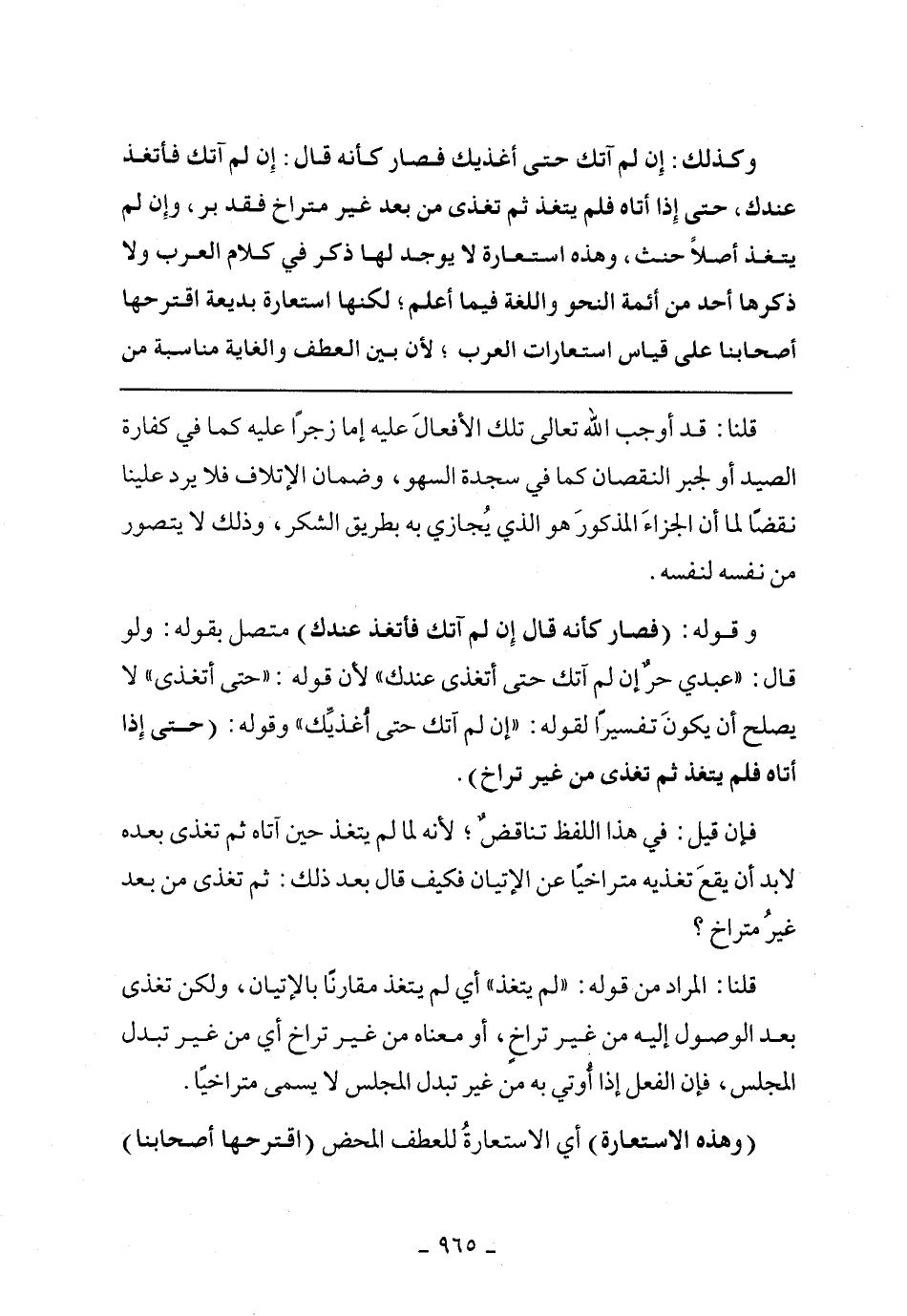 وقوله: (فصار كنه قال إن لم لآتك فأتغد عندك) متصل بقوله: ولو قال: "عبدي حر إن لم آتك حتى أتغدى عندك" لأن قوله: "حتى أتغدى" لا يصلح أن يكون تفسيرا لقوله: " إن لم آتك حتى أغذيك" وقوله: حتى إذا آتاه فلم يتغد ثم تغدى من غير تراخ).