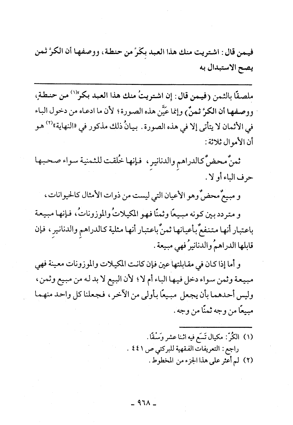 ملصقاً بالثمن (فيمن قال: إن اشتريت منك هذا العبد بكر من حنطة)، ووصفها أن الكر ثمن) وإنما عين هذه الصورة؛ لأن ما ادعاه من دخول الباء في الأثمان لا يتأتى إلا في هذه الصورة. بيان ذلك مذكور في "النهاية" هو أن الأموال ثلاثة: