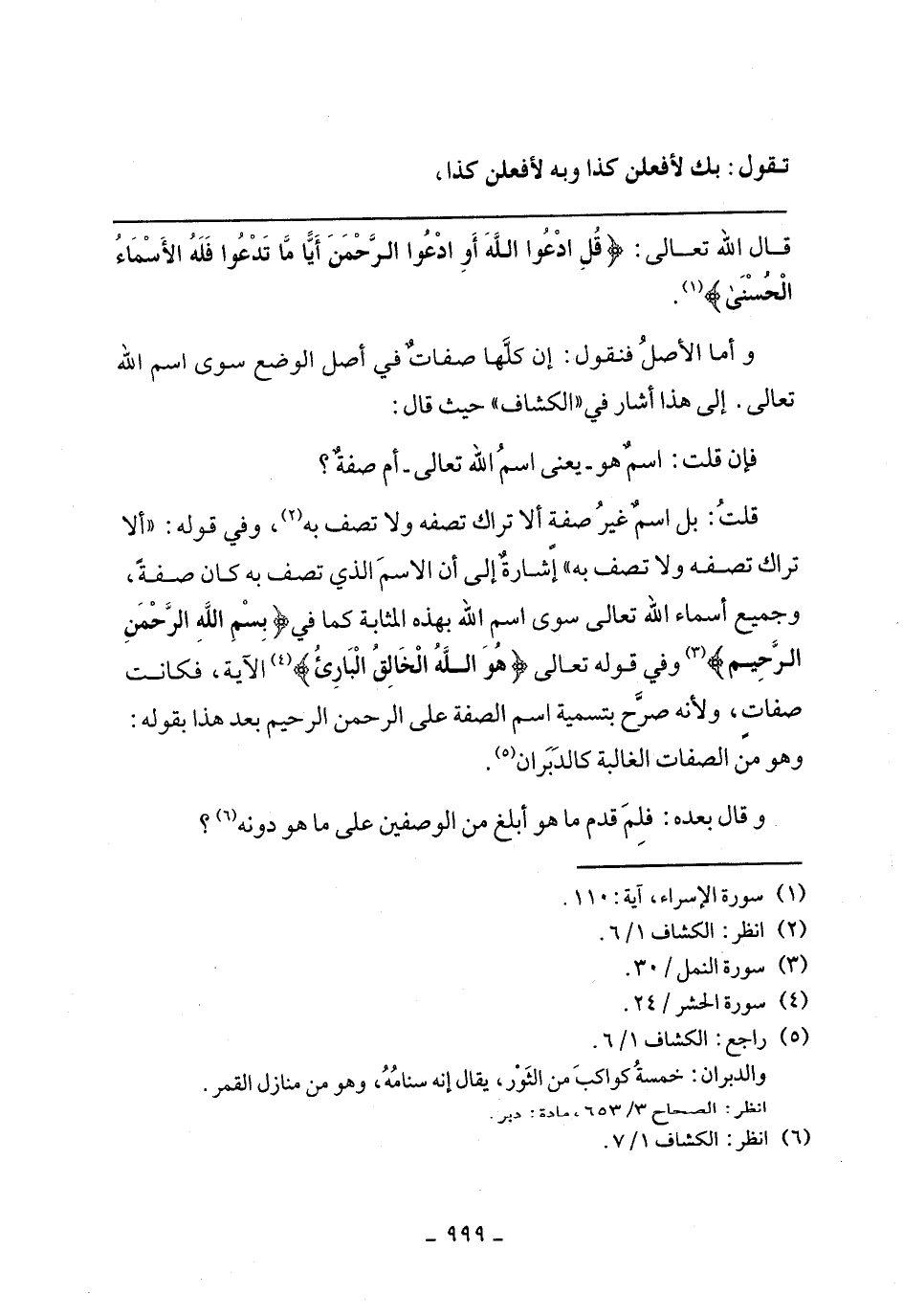 قلت: بل اسم غير صفة ألا تراك تصفه ولا تصف به، وفي قوله: "ألا تراك تصفه ولا تصف به" إشارة إلى أن الاسم الذي تصف به كان صفة، وجميع أسماء الله تعالى سوى اسم الله بهذه المثابة كما في} بِسْمِ اللَّهِ الرَّحْمَنِ الرَّحِيمِ {وفي قوله تعالى} هُوَ اللَّهُ الخَالِقُ البَارِئُ {الآية، فكانت صفات، ولأنه صرح بتسمية اسم الصفة على الرحمن الرحيم بعد هذا بقوله: وهو من الصفات الغالبة كالدبران.