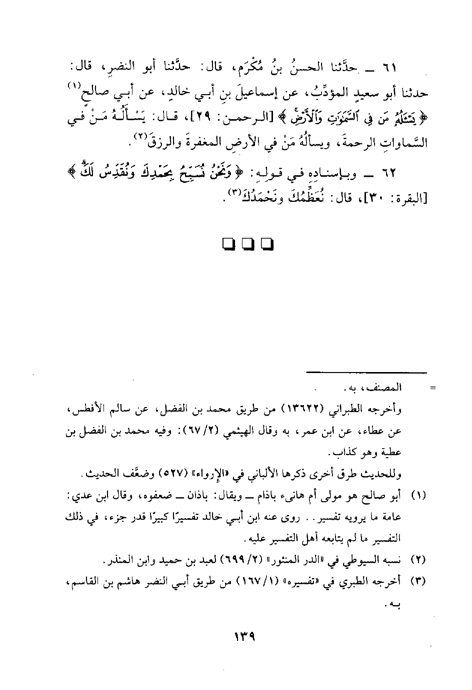 62 - وَبِإِسْنَادِهِ فِي قَوْلِهِ: {وَنَحْنُ نُسَبِّحُ بِحَمْدِكَ وَنُقَدِّسُ لك}، قَالَ: نُعَظِّمُكَ ونحمدك.