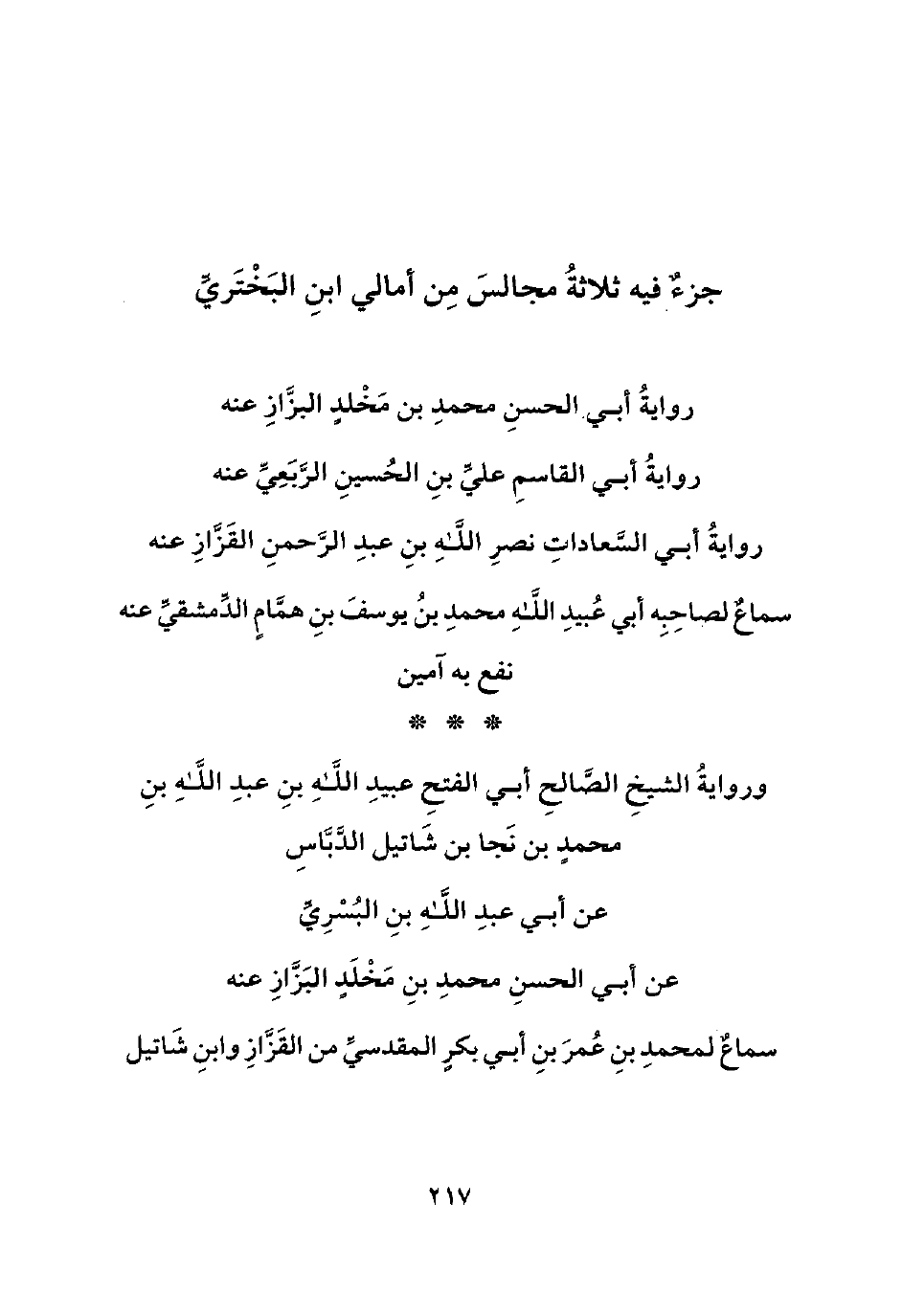 جُزْءٌ فِيهِ ثَلاثَةُ مَجَالِسَ مِنْ أَمَالِي ابْنِ الْبَخْتَرِيِّ