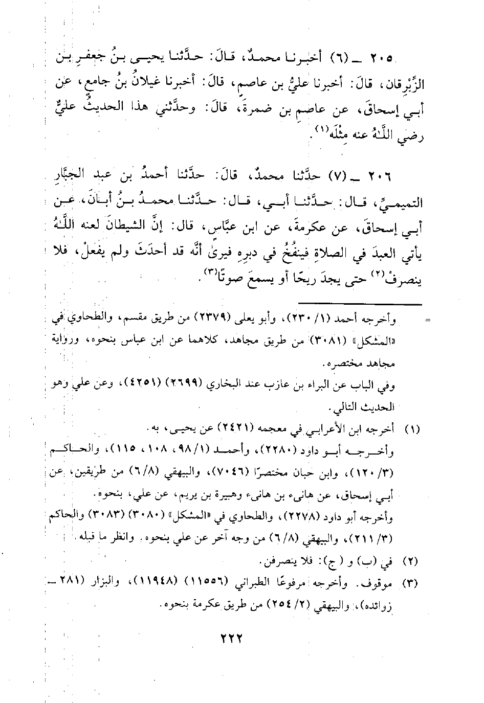206 - (7) حدثنا محمد، قال: حدثنا أحمد بن عبد الْجَبَّارِ التَّمِيمِيُّ، قَالَ: حَدَّثَنَا أَبِي، قَالَ: حَدَّثَنَا مُحَمَّدُ بْنُ أَبَانٍ، عَنْ أَبِي إِسْحَاقَ، عَنْ عِكْرِمَةَ، عَنِ ابْنِ عَبَّاسٍ، قَالَ: إِنَّ الشَّيْطَانَ لَعَنَهُ اللَّهُ يَأْتِي الْعَبْدَ فِي الصَّلاةِ فَيَنْفُخُ فِي دُبُرِهِ فَيَرَى أَنَّهُ قَدْ أَحْدَثَ وَلَمْ يفعل، فلا ينصرفن حَتَّى يَجِدَ رِيحًا أَوْ يَسْمَعَ صَوْتًا.