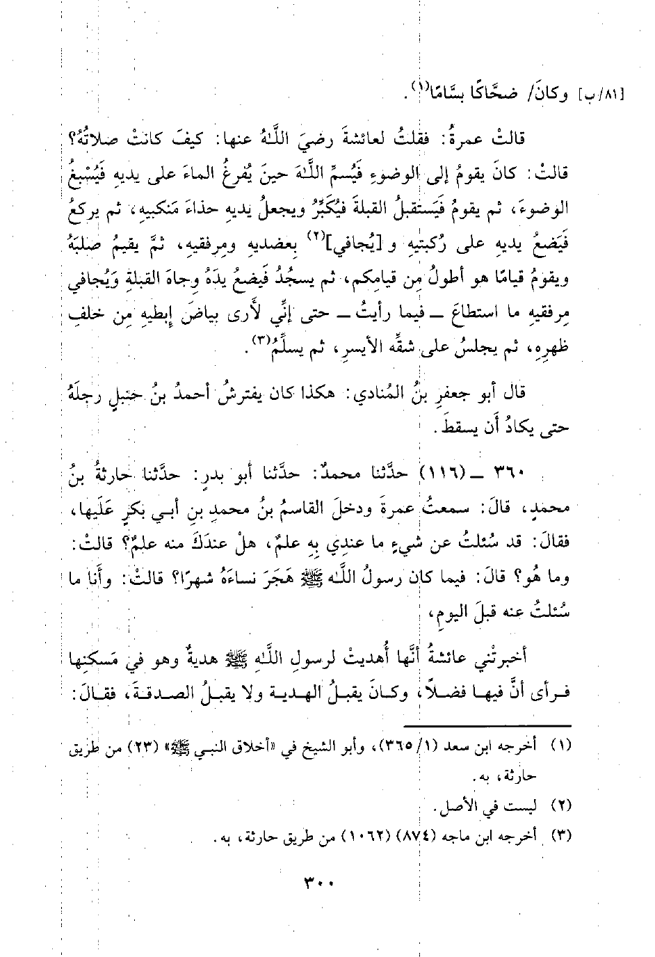 360 - (116) حَدَّثَنَا مُحَمَّدٌ: حَدَّثَنَا أَبُو بَدْرٍ: حَدَّثَنَا حَارِثَةُ بْنُ مُحَمَّدٍ، قَالَ: سَمِعْتُ عَمْرَةَ وَدَخَلَ الْقَاسِمُ بْنُ مُحَمَّدِ بْنِ أَبِي بَكْرٍ عَلَيْهَا، فَقَالَ: قَدْ سُئِلْتُ عَنْ شَيْءٍ مَا عِنْدِي بِهِ عِلْمٌ، هَلْ عِنْدَكِ مِنْهُ عِلْمٌ؟ قَالَتْ: وَمَا هُوَ؟ قَالَ: فِيمَا كَانَ رَسُولُ اللَّهِ صَلَّى الله عليه وسلم هجر نساءه شهرا؟ قالت: وَأَنَا مَا سُئِلْتُ عَنْهُ قَبْلَ الْيَوْمِ.