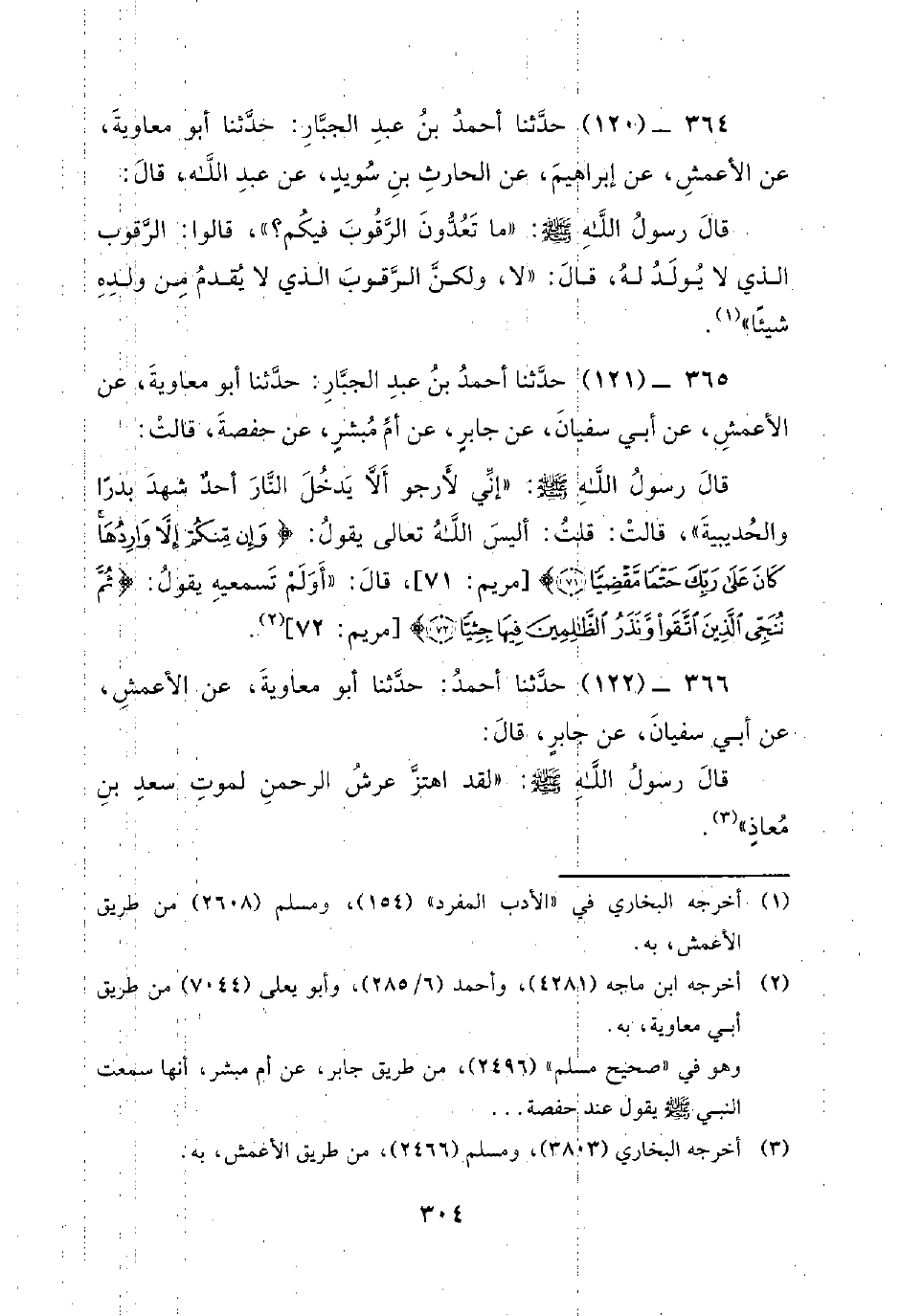 364 - (120) حَدَّثَنَا أَحْمَدُ بْنُ عَبْدِ الْجَبَّارِ: حَدَّثَنَا أَبُو معاوية، عن الأعمش، عن إبراهيم، عن الحارث بْنِ سُوَيْدٍ، عَنْ عَبْدِ اللَّهِ، قَالَ: قَالَ رسول الله صلى الله عليه وسلم: ما تَعُدُّونَ الرَّقُوبَ فِيكُمْ؟، قَالُوا: الرَّقُوبُ الَّذِي لا يُولَدُ لَهُ قَالَ: لا، وَلَكِنَّ الرَّقُوبَ الَّذِي لا يُقَدِّمُ مِنْ وَلَدِهِ شَيْئًا.
