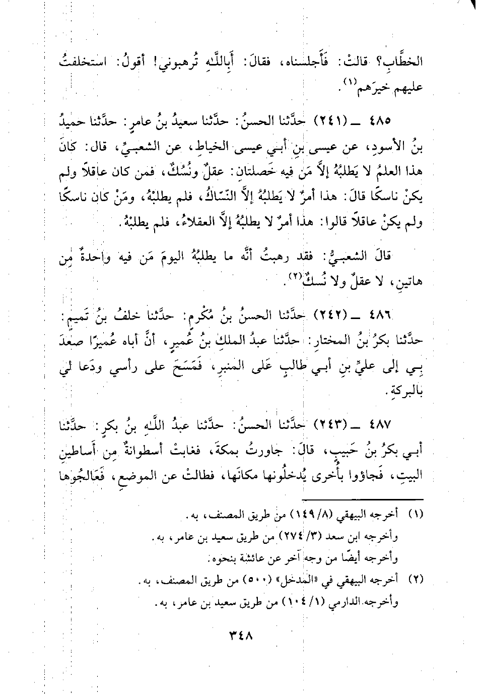 485 - (241) حدثنا الحسن: حدثنا سعيد بن عامر: حدثنا حميد بن الأسود، عن عيسى بن أبي عيسى الخياط، عن الشعبي، قال: كان هذا العلم لا يطلبه إلا من فيه خصلتان: عقل ونسك، فمن كان عاقلا ولم يكن ناسكا قال: هذا أمر لا يطلبه إلا النساك، فلم يطلبه، ومن كان ناسكا ولم يكن عاقلا قالوا: هذا أمر لا يطلبه إلا العقلاء، فلم يطلبه. قال الشعبي: فقد رهبت أنه ما يطلبه اليوم من فيه واحدة من هاتين، لا عقل ولا نسك.