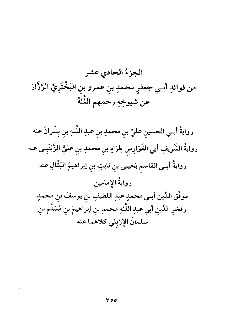 الْجُزْءُ الْحَادِي عَشَرَ مِنْ فَوَائِدِ أَبِي جَعْفَر محمد بن عمرو بن البختري الرزاز عن شُيُوخِهِ رَحِمَهُمُ اللَّهُ
