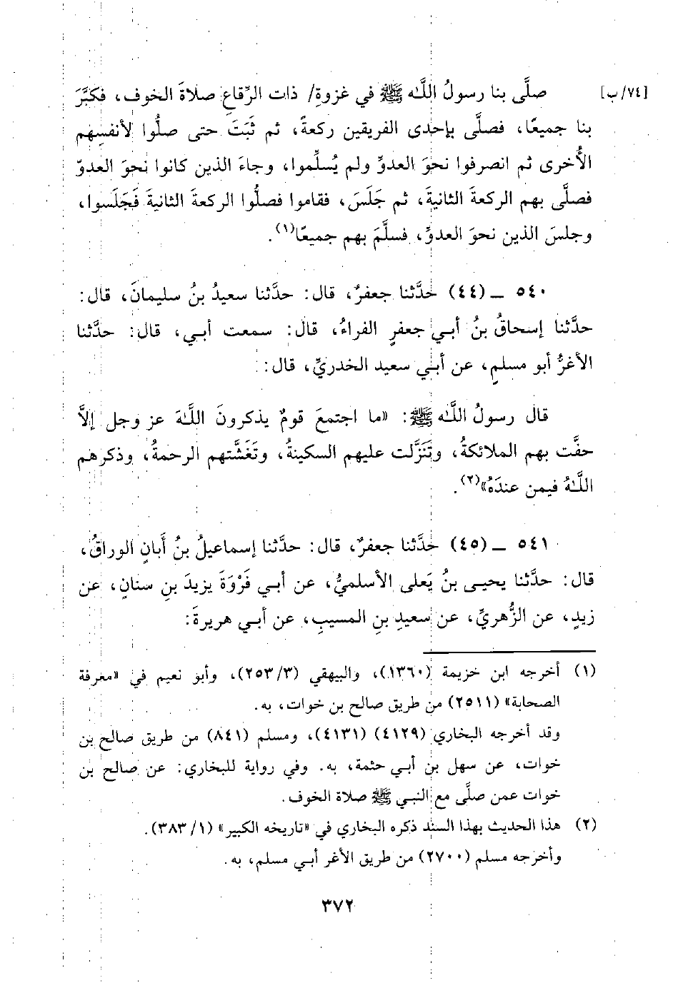 540 - (44) حَدَّثَنَا جَعْفَرٌ، قَالَ: حَدَّثَنَا سَعِيدُ بْنُ سُلَيْمَانَ، قَالَ: حَدَّثَنَا إِسْحَاقُ بْنُ أَبِي جَعْفَرٍ الْفَرَّاءُ، قَالَ: سَمِعْتُ أَبِي، قَالَ: حَدَّثَنَا الأَغَرُّ أَبُو مُسْلِمٍ، عَنْ أَبِي سَعِيدٍ الْخُدْرِيِّ، قَالَ: قَالَ رسول الله صلى الله عليه وسلم: ما اجْتَمَعَ قَوْمٌ يَذْكُرُونَ اللَّهَ عَزَّ وَجَلَّ إِلا حَفَّتْ بِهِمُ الْمَلائِكَةُ، وَتَنَزَّلَتْ عَلَيْهِمُ السَّكِينَةُ، وَتَغَشَّتْهُمُ الرَّحْمَةُ، وَذَكَرَهُمُ اللَّهُ فِيمَنْ عِنْدَهُ.