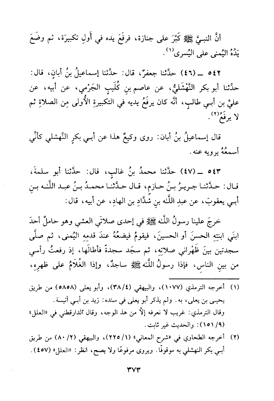 542 - (46) حَدَّثَنَا جَعْفَرٌ، قَالَ: حَدَّثَنَا إِسْمَاعِيلُ بْنُ أَبَانٍ، قَالَ: حَدَّثَنَا أَبُو بَكْرٍ النَّهْشَلِيُّ، عَنْ عَاصِمِ بْنِ كُلَيْبٍ الْجَرْمِيِّ، عَنْ أَبِيهِ، عَنْ عَلِيِّ بْنِ أَبِي طَالِبٍ، أَنَّهُ كَانَ يَرْفَعُ يَدَيْهِ فِي التَّكْبِيرَةِ الأُولَى مِنَ الصَّلاةِ ثُمَّ لا يَرْفَعُ. قَالَ إِسْمَاعِيلُ بْنُ أَبَانٍ: رَوَى وَكِيعٌ هَذَا عَنْ أَبِي بَكْرٍ النَّهْشَلِيِّ كَأَنِّي أَسْمَعُهُ يرويه عنه.