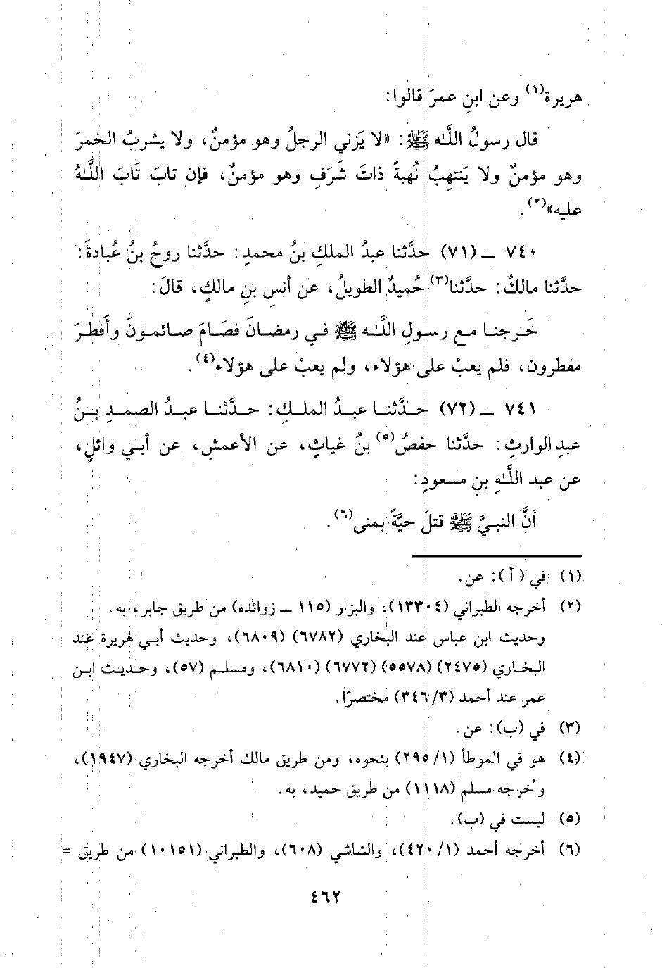 740 - (71) حدثنا عبد الملك بن محمد: حدثنا روح بن عبادة: حدثنا مالك: حدثنا حُمَيْدٌ الطَّوِيلُ، عَنْ أَنَسِ بْنِ مَالِكٍ، قَالَ: خَرَجْنَا مَعَ رسول الله صلى الله عليه وسلم في رَمَضَانَ فَصَامَ صَائِمُونَ وَأَفْطَرَ مُفْطِرُونَ، فَلَمْ يَعِبْ عَلَى هَؤُلاءِ، وَلَمْ يَعِبْ عَلَى هَؤُلاءِ.