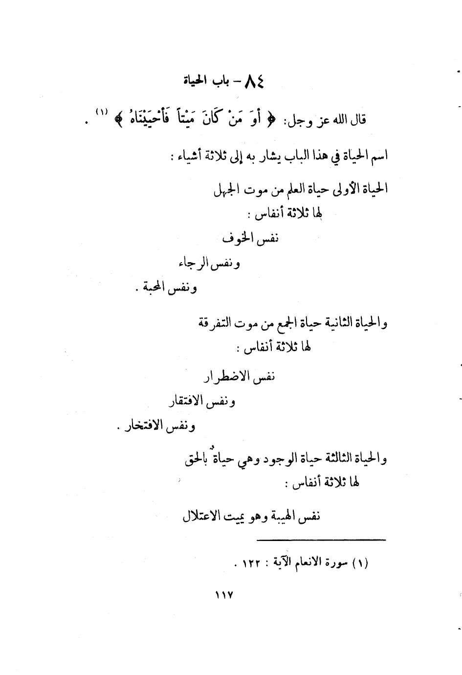 الْحَيَاة الأولى حَيَاة الْعلم من موت الْجَهْل لَهَا ثَلَاثَة أنفاس