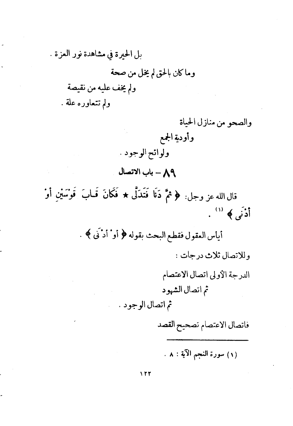 والصحو من منَازِل الْحَيَاة وأودية الْجمع ولوائح الْوُجُود 89 بَاب الِاتِّصَال
