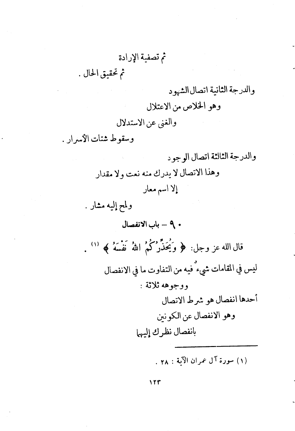 أَحدهَا انْفِصَال هُوَ شَرط الِاتِّصَال وَهُوَ الِانْفِصَال عَن الكونين بانفصال إِلَيْهِمَا