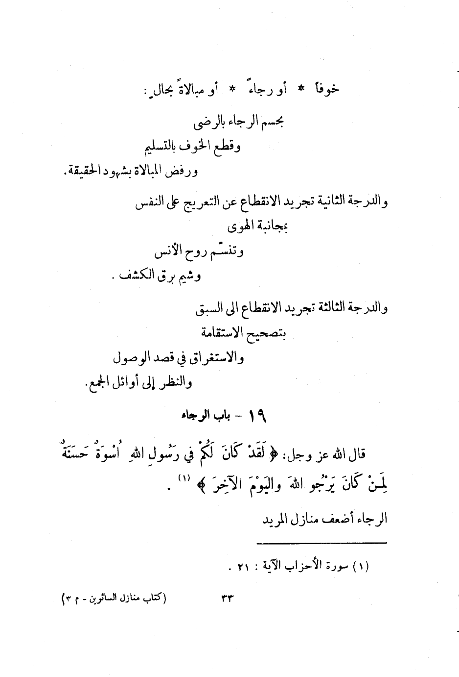 الرَّجَاء أَضْعَف منَازِل المريد