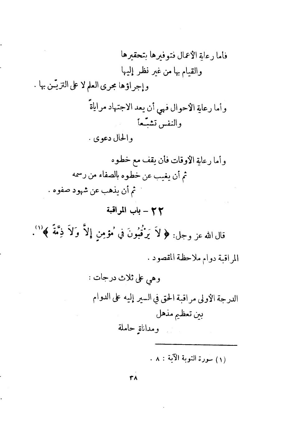 دَرَجَات الدرجَة الأولى مراقبة الْحق فِي السّير إِلَيْهِ على الدَّوَام بَين تَعْظِيم مذهل ومداناة حاملة