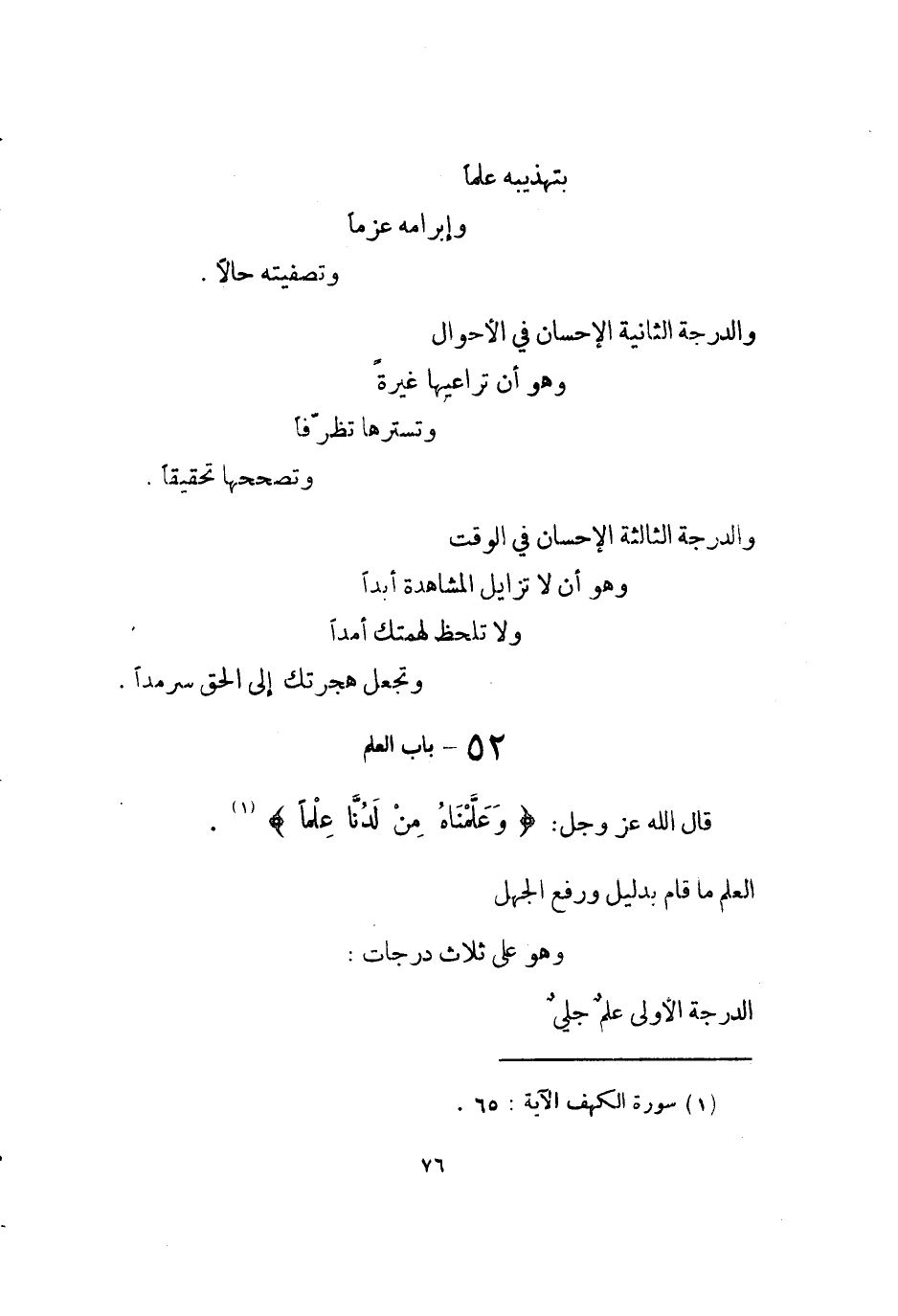 وَهُوَ على ثَلَاث دَرَجَات الدرجَة الأولى علم جلي