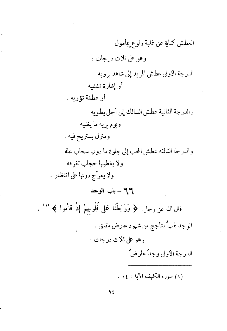 الدرجَة الأولى عَطش المريد إِلَى شَاهد يرويهِ أَو إِشَارَة تشفيه أَو عطفة تؤويه
