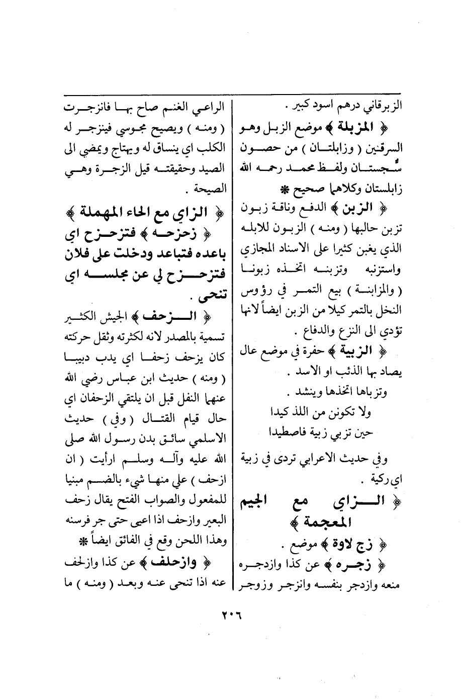 (ز ج ر) : (زَجَرَهُ) عَنْ كَذَا وَازْدَجَرَهُ مَنَعَهُ وَازْدَجَرَ بِنَفْسِهِ وَانْزَجَرَ وَزَجَرَ الرَّاعِي الْغَنَمَ صَاحَ بِهَا فَانْزَجَرَتْ (وَمِنْهُ) وَيَصِيحُ مَجُوسِيٌّ فَيَنْزَجِرُ لَهُ الْكَلْبُ أَيْ يَنْسَاقُ لَهُ وَيَهْتَاجُ وَيَمْضِي إلَى الصَّيْدِ وَحَقِيقَتُهُ قِيلَ الزَّجْرَةُ وَهِيَ الصَّيْحَةُ.