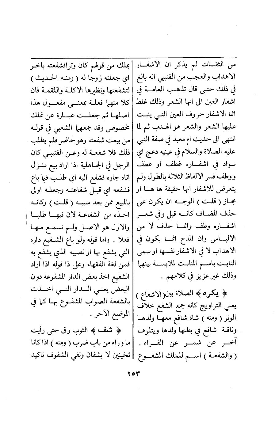 (ش ف هـ) : (رَجُلٌ) (أَشْفَهُ) وَشُفَاهِيٌّ عَظِيمُ الشَّفَتَيْنِ وَيُقَالُ هُمْ أَهْلُ الشَّفَةِ أَيْ الَّذِينَ لَهُمْ حَقُّ الشُّرْبِ بِشِفَاهِهِمْ وَأَنْ يَسْقُوا دَوَابَّهُمْ وَصَاحِبُ (الْمُشَافَهَاتِ) هُوَ عَلِيٌّ بْنُ إِسْحَاقَ الْحَنْظَلِيُّ لِأَنَّهُ زَعَمَ أَنَّ مَا ذُكِرَ مِنْ التَّفْسِيرِ كُلِّهِ مُسْنَدٌ إلَى رَسُولِ اللَّهِ صَلَّى اللَّهُ عَلَيْهِ وَآلِهِ وَسَلَّمَ فَكَأَنَّهُ شَافَهَهُ بِهِ.