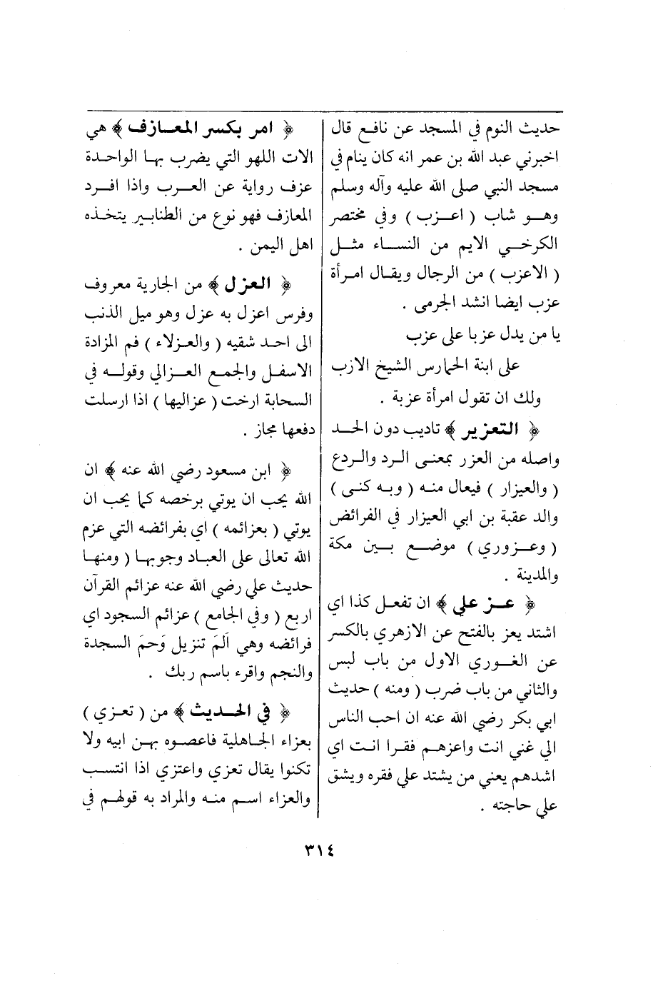 (ع ز ف) : (أَمَرَ بِكَسْرِ الْمَعَازِفِ) هِيَ آلَاتُ اللَّهْو الَّتِي