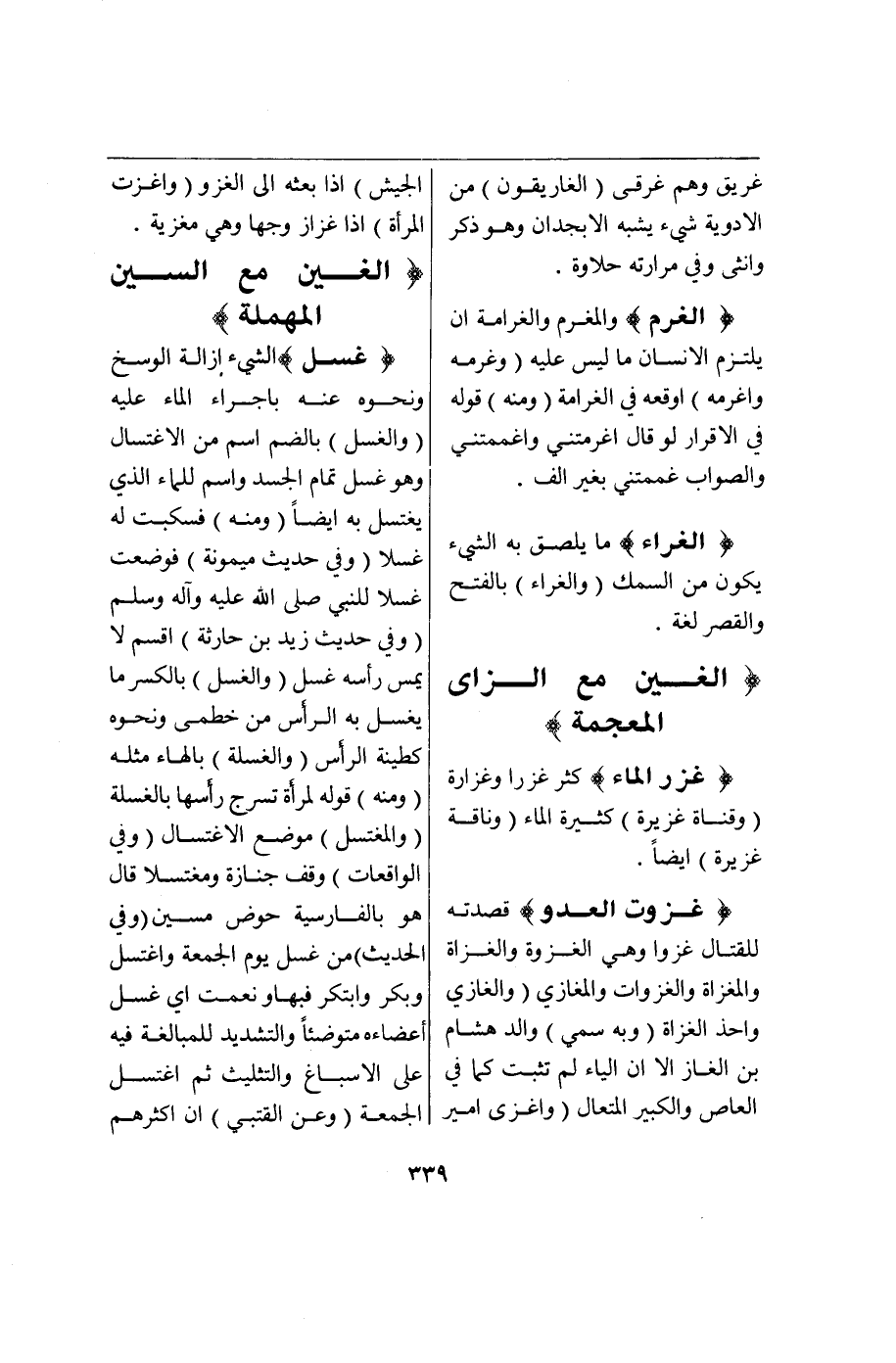 (غ ز ر) (غَزُرَ الْمَاءُ) كَثُرَ غُزْرًا وَغَزَارَةً (وَقَنَاةٌ غَزِيرَةٌ) كَثِيرَةُ الْمَاءِ (وَنَاقَةٌ غَزِيرَةٌ) أَيْضًا.