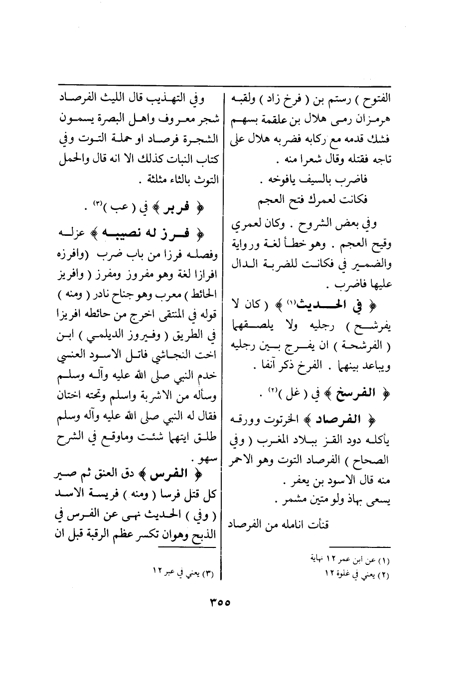 (ف ر خ) : (الْفَرْخُ) بِالْخَاءِ عَامٌّ فِي وَلَدِ كُلِّ طَائِرٍ وَالْجَمْع أَفْرُخٌ وَأَفْرَاخٌ وَفِرَاخٌ (وَفِرَاخُ الزَّرْعِ) شَاخَاتُهُ اسْتِعَارَةً (وَمِنْهُ) وَلَوْ دَفَعَ إلَيْهِ رَطْبَةً قَدْ صَارَتْ فِرَاخًا وَقِدَاحًا تَصْحِيف (وَمِنْ) مَسَائِل الْعَوْلِ (أُمُّ الْفُرُوخِ) لِكَثْرَةِ الِاخْتِلَاف فِيهَا وَلَمْ يُسْمَع هَذَا الْجَمْعُ إلَّا هَاهُنَا (وَأَفْرَخَ) الْبَيْضُ خَرَجَ فَرْخُهُ (وَأَفْرَخَ) الطَّائِرُ وَفَرَّخَ صَارَ ذَا فَرْخٍ عَلَى ذَا قَوْلُهُ فِي الطَّائِر ذَا فُرِّخَ بِالضَّمِّ خَطَأٌ (وَفَرُّوخُ) اسْمٌ أَعْجَمِيٌّ وَهُوَ وَالِدُ رُسْتُمَ وَصَاحِبِ جَيْشِ الْعَجَمِ يَوْمَ الْقَادِسِيَّةِ (وَفِي الْفُتُوح) رُسْتُمُ بْنُ (فَرْخَزَادَ) وَلَقَبُهُ هُرْمُزَانُ رَمَى هِلَالَ بْنَ عَلْقَمَةَ بِسَهْمٍ فَشَكَّ قَدَمَهُ مَعَ رِكَابِهِ فَضَرَبَهُ هِلَالٌ عَلَى تَاجِهِ فَقَتَلَهُ وَقَالَ شِعْرًا مِنْهُ