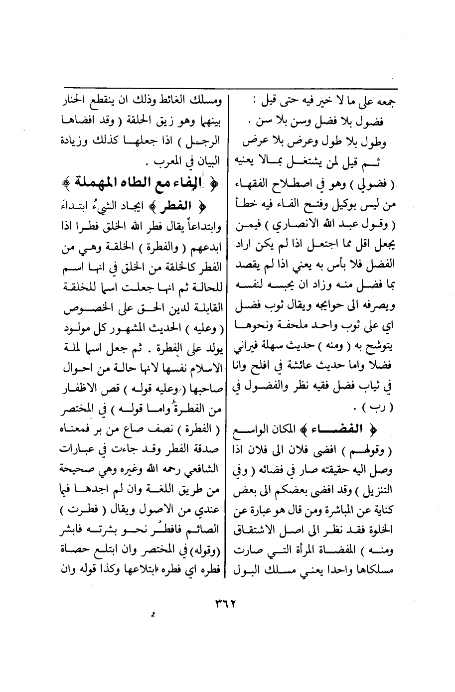 (ف ض ل) : (الْفَضْلُ) الزِّيَادَة وَقَدْ غَلَبَ جَمْعُهُ عَلَى مَا لَا خَيْرَ فِيهِ حَتَّى قِيلَ