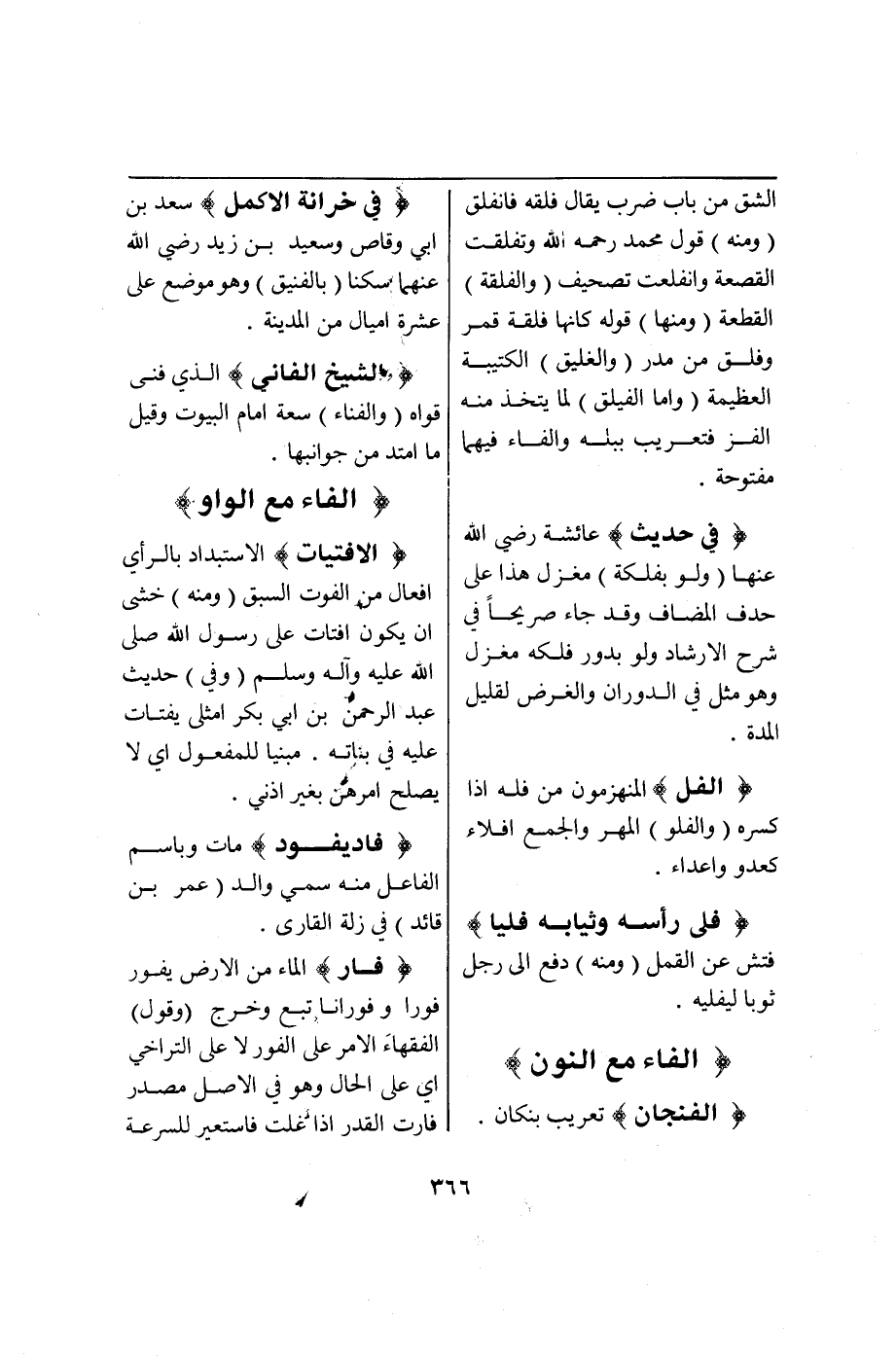 (ف ل ح) : (ابْنُ مَسْعُودٍ - رَضِيَ اللَّهُ عَنْهُ -) (اسْتَفْلِحِي) بِأَمْرِك أَيْ فُوزِي بِأَمْرِك وَاسْتَبِدِّي بِهِ مِنْ الْفَلَاحِ وَهُوَ الْفَوْزُ بِالْمَطْلُوبِ وَمَدَارُ التَّرْكِيب عَلَى الشَّقِّ وَالْقَطْعِ (وَمِنْهُ) الْحَدِيدُ بِالْحَدِيدِ يُفْلَحُ (وَالْأَفْلَحُ) الْمَشْقُوقُ الشِّفَةِ السُّفْلَى (وَبِهِ سُمِّيَ) أَفْلَحُ أَبُو الْقُعَيْس أَوْ أَخُو أَبِي الْقُعَيْسِ عَمُّ عَائِشَةَ مِنْ الرَّضَاعَة وَفِي غَيْرِ الْحَدِيثِ اسْتَفْلِجِي بِالْجِيمِ مِنْ الْفُلْجِ وَهُوَ الظُّفُر.