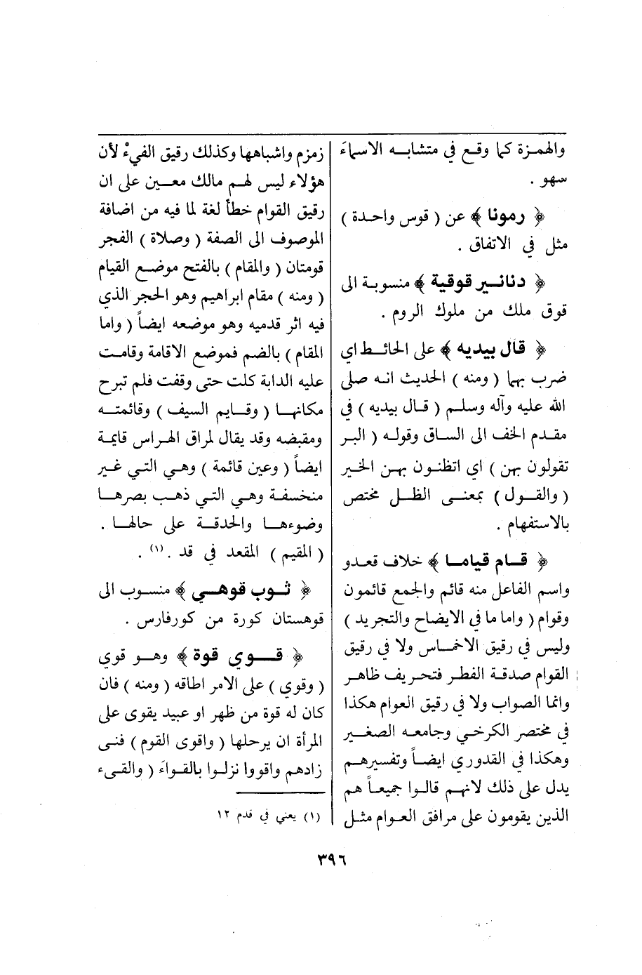(ق وم) : (قَامَ قِيَامًا) خِلَافُ قَعَدَ وَاسْمُ الْفَاعِلِ مِنْهُ قَائِمٌ وَالْجَمْعُ قَائِمُونَ وَقُوَّامٌ (وَأَمَّا