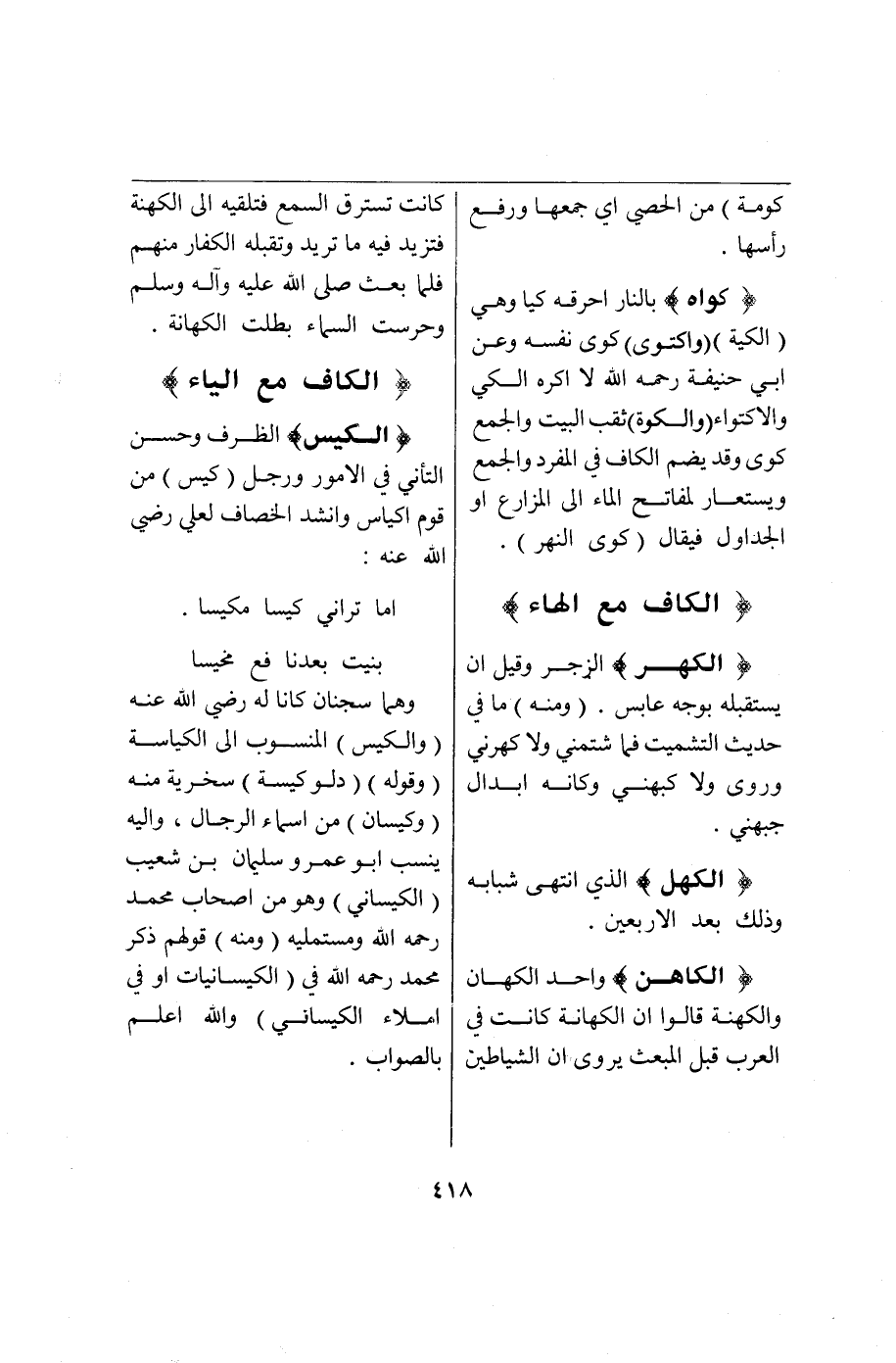 (ك وس) : (كَاسَ) الْبَعِيرُ مَشَى عَلَى ثَلَاثِ قَوَائِمَ كَوْسًا مِنْ بَابِ طَلَبَ (وَابْنُ كَاسٍ) هُوَ عَلِيُّ بْنُ مُحَمَّدِ بْنِ كَاسٍ النَّخَعِيُّ يَرْوِي عَنْ مُحَمَّدِ بْنِ عَلِيٍّ الْعَامِرِيِّ وَعَنْهُ الْمِسْكِيُّ أُسْتَاذُ أُسْتَاذِ الصَّيْمَرِيِّ.