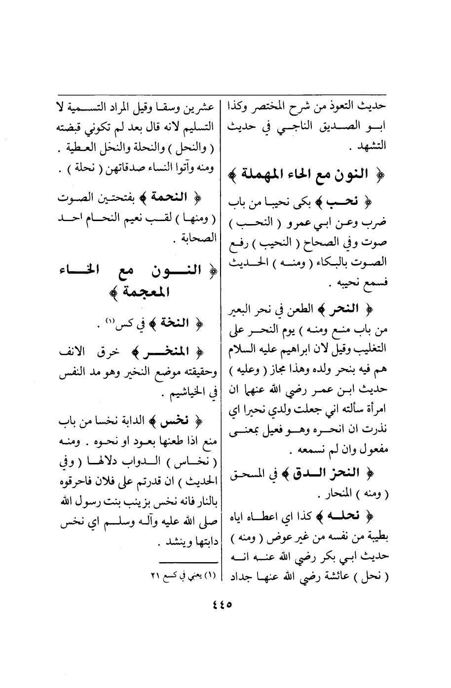 (م ل ح) : (وَالْمَلَّاحَةُ) مَنْبِتُ الْمِلْحِ (وَمِنْهَا) قَوْلُهُ حِمَارٌ مَاتَ فِي الْمَلَّاحَةِ وَرُوِيَ فِي الْمَمْلَحَةِ وَكِلَاهُمَا بِمَعْنًى إلَّا أَنَّ الثَّانِيَةَ قِيَاسٌ لَا سَمَاعٌ (وَمَاءٌ مِلْحٌ وَسَمَكٌ مَلِيحٌ وَمَاءٌ مَمْلُوحٌ وَلَا يُقَالُ مَالِحٌ إلَّا فِي لُغَةٍ رَدِيئَةٍ وَهُوَ الْمُقَدَّدُ الَّذِي جُعِلَ فِيهِ مِلْحٌ وَمِنْ الْمَجَازِ وَجْهٌ مَلِيحٌ) وَفِيهِ مَلَاحَةٌ وَبِهِ كُنِّيَ أَبُو الْمَلِيحِ بْنُ أُسَامَةَ رَاوِي كِتَابِ عُمَرَ - رَضِيَ اللَّهُ عَنْهُ - إلَى الْأَشْعَرِيِّ فِي أَدَبِ الْقَاضِي (وَكَانَتْ) جُوَيْرِيَةُ امْرَأَةً مُلَاحَةً بِالضَّمِّ وَالتَّخْفِيفِ أَيْ مَلِيحَةً فِي الْغَايَةِ (وَالْمُمَالَحَةُ الْمُوَاكَلَةُ) وَمِنْهَا قَوْلُهُمْ بَيْنَهُمَا حُرْمَةُ الْمِلْحِ (وَالْمُمَالَحَةِ) وَهِيَ الْمُرَاضَعَةُ وَقَدْ مَلَحَتْ فُلَانَةُ لِفُلَانٍ أَيْ أَرْضَعَتْ لَهُ مِنْ بَابِ مَنَعَ (وَمِنْهُ) وَلَوْ مَلَحْنَا لِلْحَارِثِ بْنِ شِمْرٍ (وَالْحَدِيثُ) الْآخَرُ لَا تُحَرِّمُ الْمَلْحَةُ وَرُوِيَ بِالْجِيمِ وَكَبْشٌ أَمْلَحُ فِيهِ مُلْحَةٌ وَهِيَ بَيَاضٌ