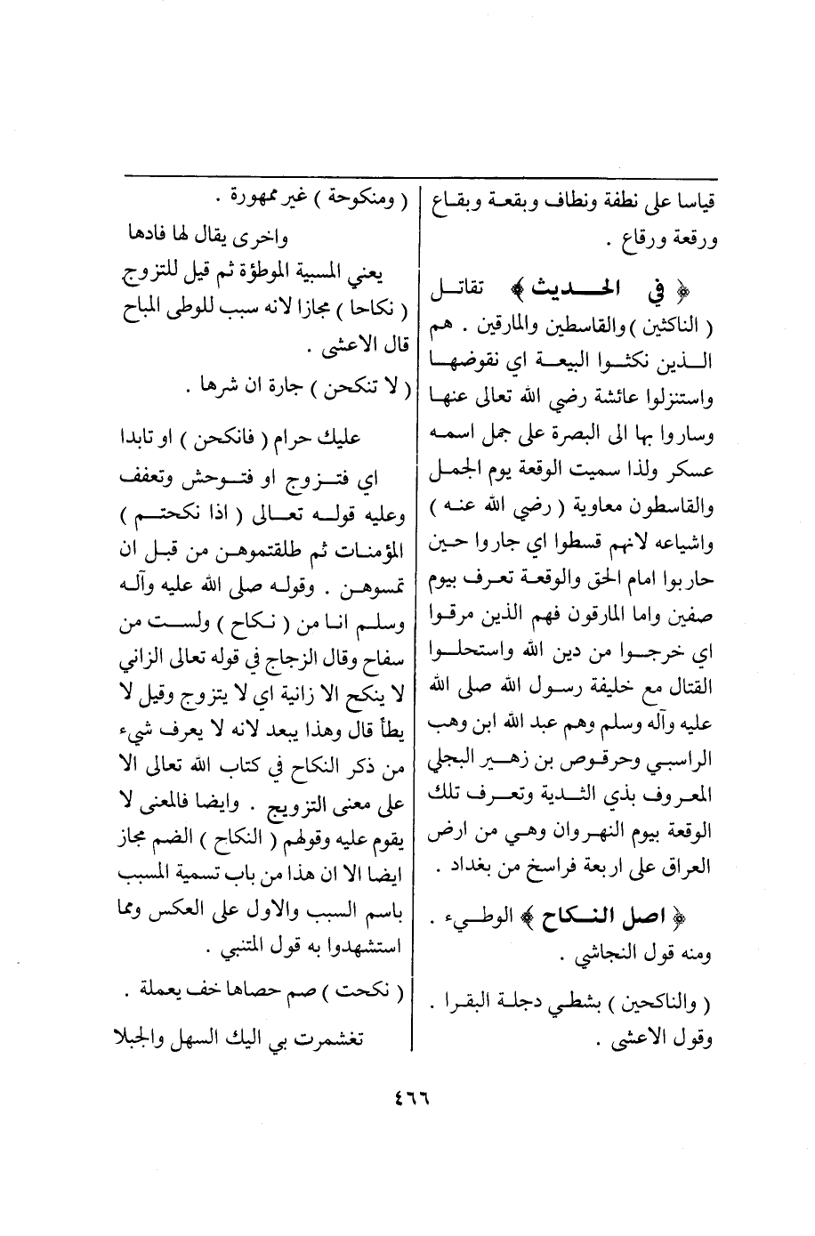 (ن ص ل) : (نَصْلُ) السَّيْفِ حَدِيدَتُهُ وَكَذَلِكَ (نَصْلُ) السَّهْمِ وَالْجَمْعُ نُصُولٌ وَنِصَالٌ (وَأَمَّا قَوْلُهُ) لَا سَبَقَ إلَّا فِي كَذَا وَكَذَا أَوْ نَصْلٍ فَالْمُرَادُ بِهِ الْمُرَامَاةُ وَالضَّادُ الْمُعْجَمَةُ تَصْحِيفٌ إنَّمَا ذَاكَ الْمُنَاضَلَةُ وَالنِّضَالُ وَفِي خِزَانَةِ الْفِقْهِ يَجُوزُ السَّلَمُ فِي كُلِّ مَا يُمْكِنُ ضَبْطُهُ كَالْحِنْطَةِ وَكَذَا وَكَذَا (وَنُصُولُ الْقَبِيعَةِ) أَرَادَ جَمْعَ نَصْلِ السَّيْفِ وَالْقَبِيعَةُ مَا عَلَى رَأْسِ مِقْبَضِ السَّيْفِ مِنْ فِضَّةٍ أَوْ حَدِيدَةٍ أَوْ غَيْرِهَا وَإِنَّمَا أُضِيفَتْ إلَيْهَا لِيُفَرَّقَ بِذَلِكَ بَيْنَ السُّيُوفِ وَالسِّهَامِ.
