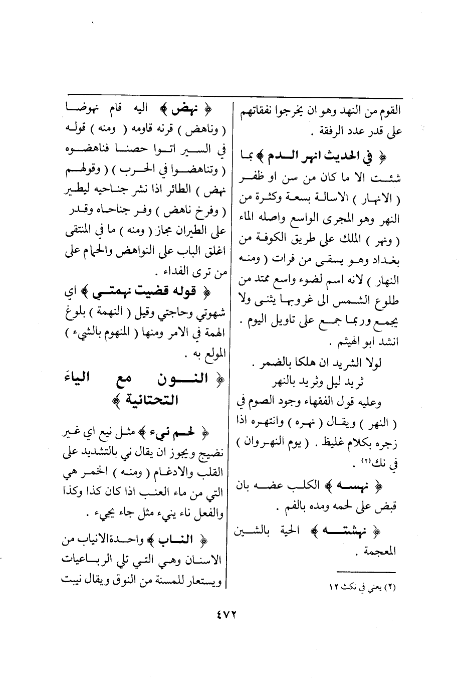 (ن ف ر) : (نَفَرَتْ) الدَّابَّةُ نُفُورًا أَوْ نِفَارًا (وَنَفَرَ) الْحَاجُّ نَفْرًا وَمِنْهُ أَنْتِ طَالِقٌ فِي (نَفْرِ الْحَاجِّ) (وَيَوْمُ النَّفْرِ) الثَّالِثُ مِنْ يَوْمِ النَّحْرِ لِأَنَّهُمْ يَنْفِرُونَ مِنْ مِنًى (وَنَفَرَ الْقَوْمُ) فِي الْأَمْرِ لِوَالِي الثَّغْرِ نَفْرًا وَنَفِيرًا وَمِنْهُ (النَّفِيرُ الْعَامُّ) وَالنَّفِيرُ أَيْضًا الْقَوْمُ النَّافِرُونَ لِحَرْبٍ أَوْ غَيْرِهَا وَمِنْهُ قَوْلُهُمْ لِمَنْ لَا يَصْلُحُ فِي مُهِمٍّ لَا فِي الْعِيرِ وَلَا فِي النَّفِيرِ وَالْأَصْلُ عِيرُ قُرَيْشٍ الَّتِي أَقْبَلَتْ مَعَ أَبِي سُفْيَانَ مِنْ الشَّامِ (وَالنَّفِيرُ) مَنْ خَرَجَ مَعَ عُتْبَةَ بْنِ رَبِيعَةَ لِاسْتِنْقَاذِهَا مِنْ أَيْدِي الْمُسْلِمِينَ وَكَانَ بِبَدْرٍ مَا كَانَ وَهُمَا الطَّائِفَتَانِ فِي قَوْله تَعَالَى {وَإِذْ يَعِدُكُمُ اللَّهُ إِحْدَى الطَّائِفَتَيْنِ} [الأنفال: 7] وَأَوَّلُ مَنْ قَالَ ذَلِكَ أَبُو سُفْيَانَ لِبَنِي زُهْرَةَ حِينَ صَادَفَهُمْ مُنْصَرِفِينَ إلَى مَكَّةَ قَالَ الْأَصْمَعِيُّ يُقَالُ لِلرَّجُلِ يُحَطُّ أَمْرُهُ وَيَصْغُرُ قَدْرُهُ (وَاسْتَنْفَرَ) الْإِمَامُ النَّاسَ لِجِهَادِ الْعَدُوِّ إذَا حَثَّهُمْ عَلَى النَّفِيرِ وَدَعَاهُمْ إلَيْهِ (وَأَمَّا) مَا رُوِيَ أَنَّ رَجُلًا وَجَدَ لُقَطَةً حِينَ أَنْفَرَ عَلِيٌّ - رَضِيَ اللَّهُ عَنْهُ - النَّاسَ إلَى صِفِّينَ فَالصَّوَابُ اسْتَنْفَرَ لِأَنَّ الْإِنْفَارَ هُوَ التَّنْفِيرُ وَلَمْ يُسْمَعْ بِهَذَا الْمَعْنَى وَفِيهِ قَالَ فَعَرَّفْتُهَا ضَعِيفًا أَيْ سِرًّا وَلَمْ أُعْلِنْ بِهِ فِي نَادِي الْقَوْمِ وَمُجْتَمَعِهِمْ فَأَخْبَرْتُ عَلِيًّا - رَضِيَ اللَّهُ عَنْهُ - فَقَالَ إنَّكَ لَعَرِيضُ الْقَفَا أَيْ أَبْلَهُ حَيْثُ لَمْ تُظْهِرْ التَّعْرِيفَ (وَالنَّفَرُ) بِفَتْحَتَيْنِ مِنْ الثَّلَاثَةِ إلَى الْعَشَرَةِ مِنْ الرِّجَالِ وَقَوْلُ الشَّعْبِيِّ حَدَّثَنِي بِضْعَةَ عَشَرَ نَفَرًا فِيهِ نَظَرٌ لِأَنَّ اللَّيْثَ قَالَ يُقَالُ هَؤُلَاءِ عَشَرَةُ نَفَرٍ أَيْ رِجَالٍ وَلَا يُقَالُ فِيمَا فَوْقَ الْعَشَرَةِ.