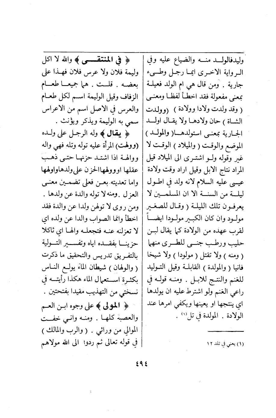 (ول د) : (الْوَلَدُ) يَقَعُ عَلَى الذَّكَرِ وَالْأُنْثَى وَالْوَاحِدِ وَالْجَمْعِ (وَالْوَلِيدُ) صَبِيٌّ وَجَمْعُهُ وِلْدَانٌ (وَالْوَلِيدَةُ) الصَّبِيَّةُ وَجَمْعُهَا وَلَائِدُ وَيُقَالُ لِلْعَبْدِ حِينَ يَسْتَوْصِفُ قَبْلَ أَنْ يَحْتَلِمَ (وَلِيدٌ) وَلِلْأَمَةِ (وَلِيدَةٌ) وَإِنْ أَسَنَّتْ وَمِنْهَا حَدِيثُ عُمَرَ «مَنْ وَطِيءَ وَلِيدَةً فَالْوَلَدُ مِنْهُ وَالضَّيَاعُ عَلَيْهِ» وَفِي الرِّوَايَةِ الْأُخْرَى «أَيُّمَا رَجُلٍ وَطِيءَ جَارِيَةً» وَمَنْ قَالَ هِيَ أُمُّ الْوَلَدِ فَعِيلَةٌ بِمَعْنَى مَفْعُولَةٍ فَقَدْ أَخْطَأَ لَفْظًا وَمَعْنًى (وَقَدْ وَلَدَتْ وِلَادًا وَوِلَادَةً) (وَوَلَّدَتْ الشَّاةُ) حَانَ وِلَادُهَا وَلَا يُقَالُ أَوْلَدَ الْجَارِيَةَ بِمَعْنَى اسْتَوْلَدَهَا