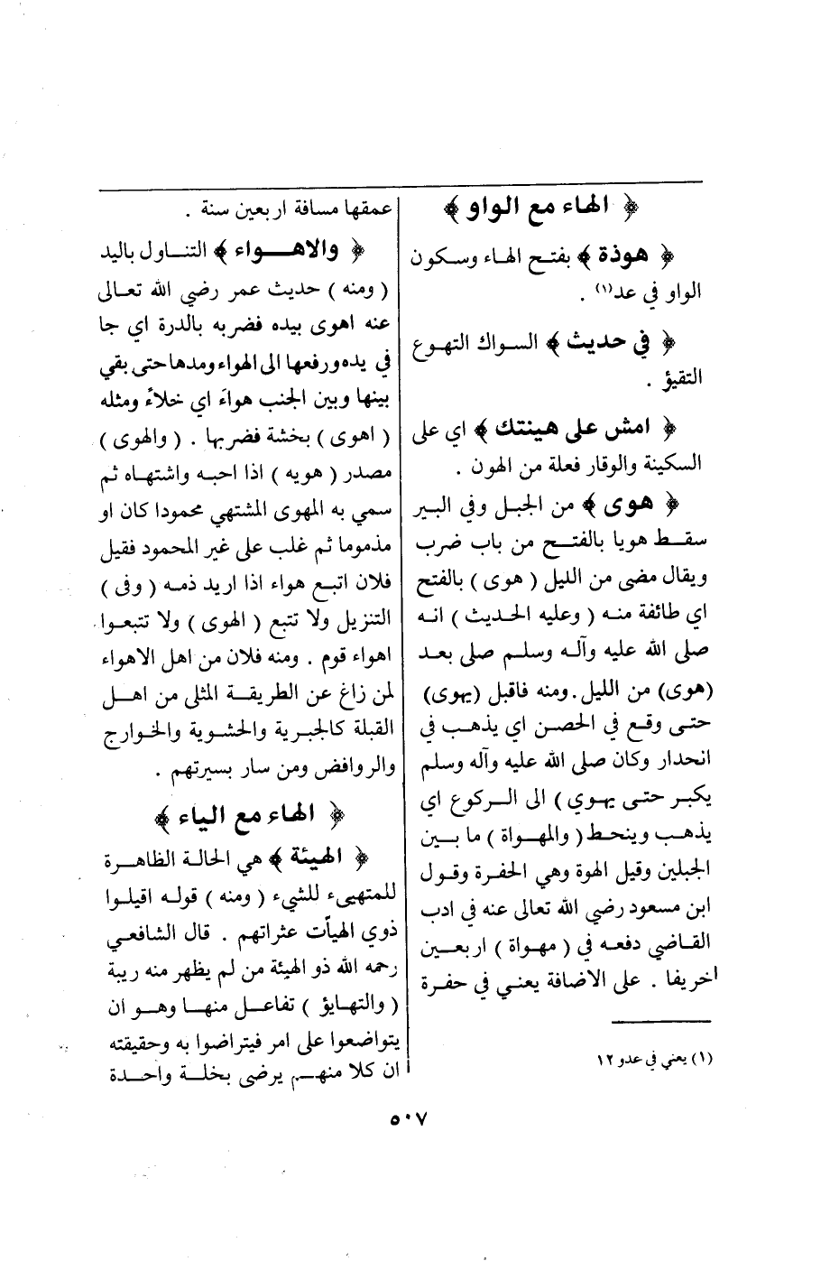 (هـ ن و) : (الْهَنُ) كِنَايَةٌ عَنْ كُلِّ اسْمِ جِنْسٍ وَلِلْمُؤَنَّثِ هَنَةٌ وَلَامُهُ ذَاتُ وَجْهَيْنِ فَمَنْ قَالَ وَاوٌ قَالَ فِي الْجَمْعِ (هَنَوَاتٌ) وَفِي التَّصْغِيرِ (هُنَيَّةُ) وَمَنْ قَالَ هَاءٌ قَالَ هُنَيْهَةٌ (وَمِنْهَا) قَوْلُهُ مَكَثَ هُنَيْهَةً أَيْ