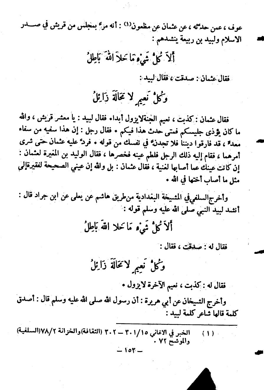 وأخرج الشيخان عن أبي هريرة: أن رسول الله صلّى الله عليه وسلّم قال: أصدق كلمة قالها شاعر كلمة لبيد: