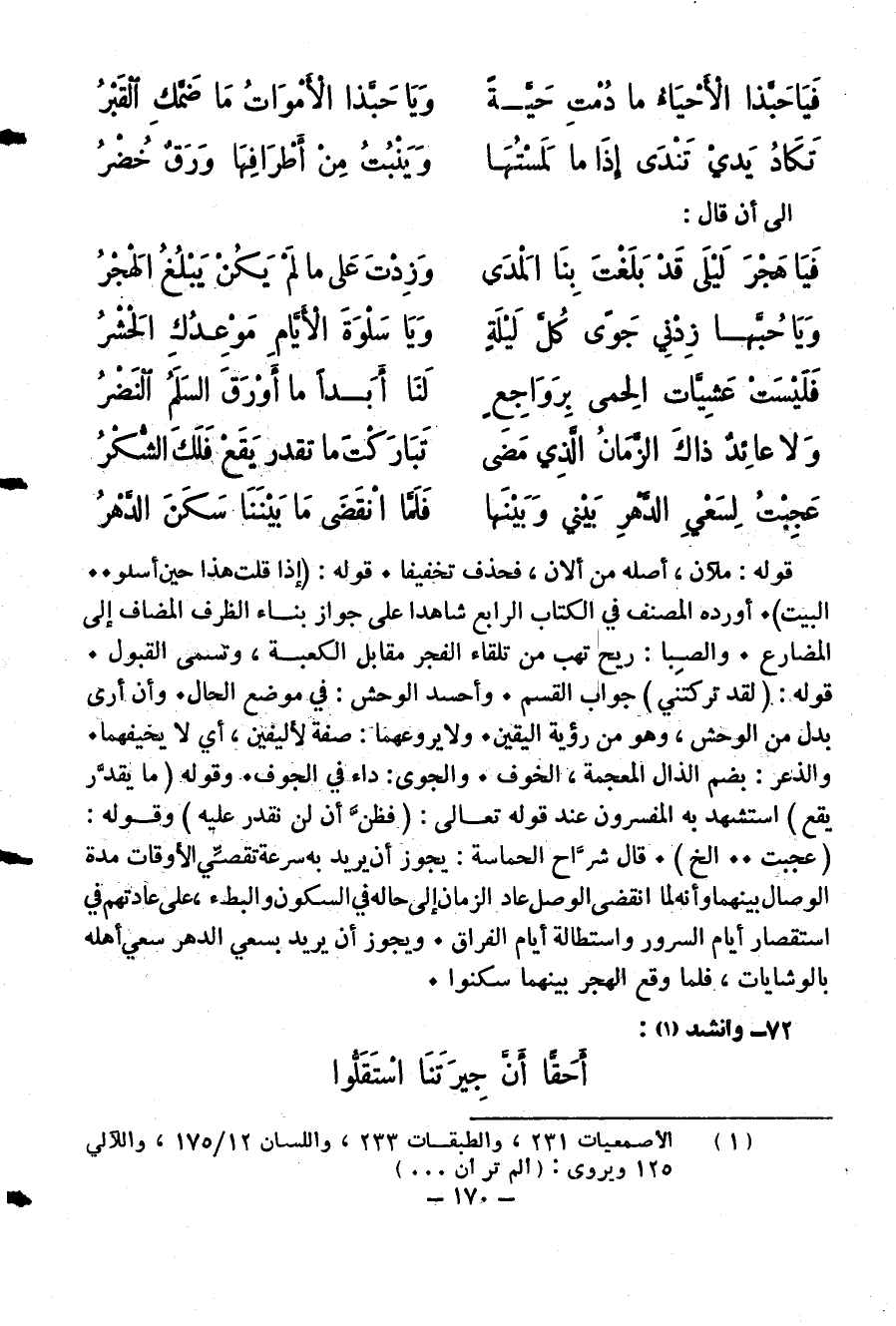 (¬1) الأصمعيات 231، والطبقات 233، واللسان 12/ 175، واللآلي 125 ويروى: (ألم تر أن ...)