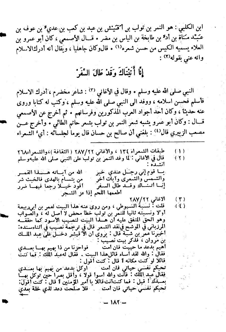(¬2) قال في الأغاني: لما وفد النمر بن تولب على النبي صلّى الله عليه وسلّم أنشده: