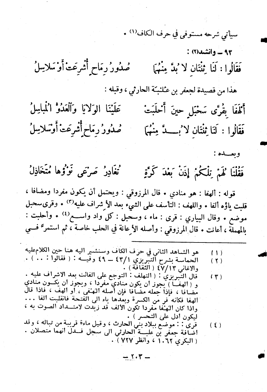(¬1) هو الشاهد الثاني في حرف الكاف وستشير اليه هنا حين الكلام عليه