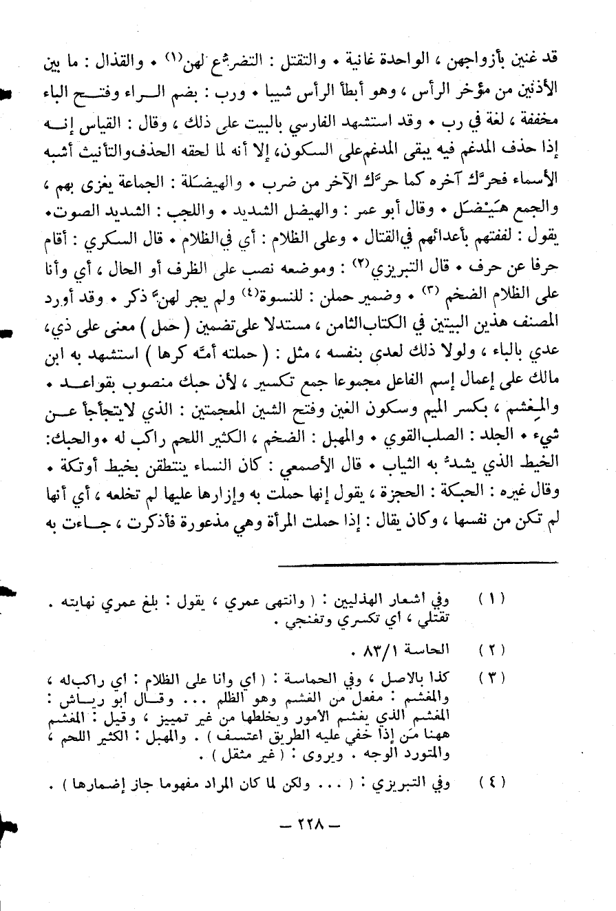 قد غنين بأزواجهن، الواحدة غانية. والتقتل: التضرّع لهن (¬1). والقذال: ما بين الأذنين من مؤخر الرأس، وهو أبطأ الرأس شيبا. ورب: بضم الراء وفتح الباء مخففة، لغة في رب. وقد استشهد الفارسي بالبيت على ذلك، وقال: القياس إنه إذا حذف المدغم فيه يبقى المدغم على السكون، إلا أنه لما لحقه الحذف والتأنيث أشبه الأسماء فحرّك آخره كما حرّك الآخر من ضرب. والهيضلة: الجماعة يغزى بهم، والجمع هيضل. وقال أبو عمر: والهيضل الشديد. واللجب: الشديد الصوت.