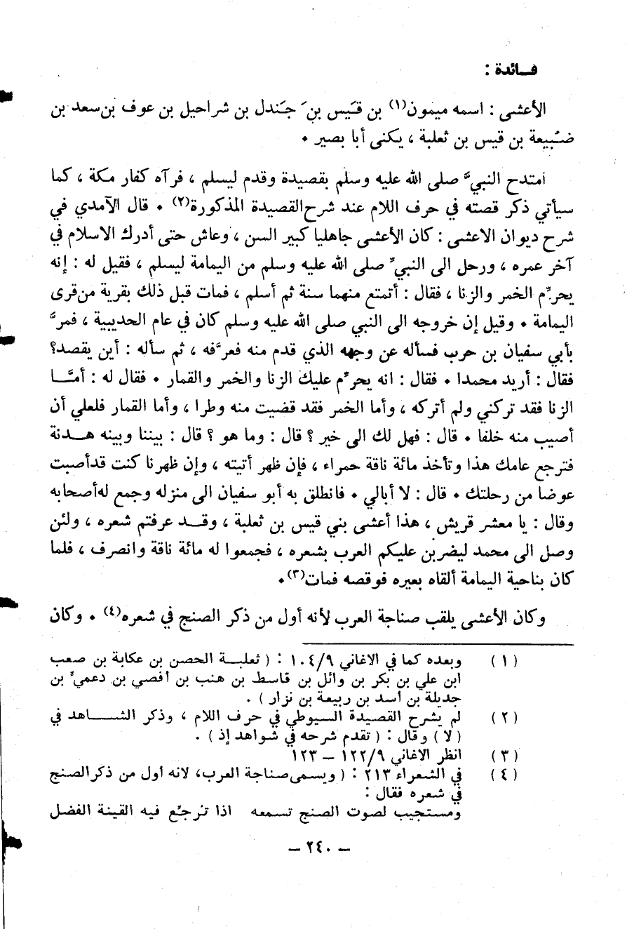 (¬4) في الشعراء 213: (ويسمى صناجة العرب، لانه اول من ذكر الصنج في شعره فقال: