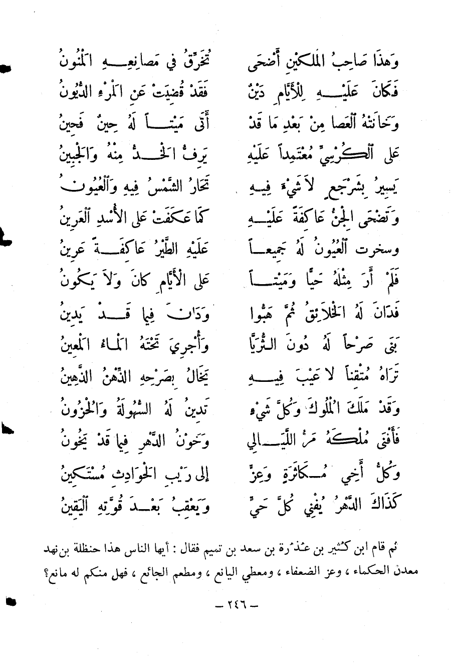 وقد ملك الملوك وكلّ شيء … تدين له السّهولة والحزون