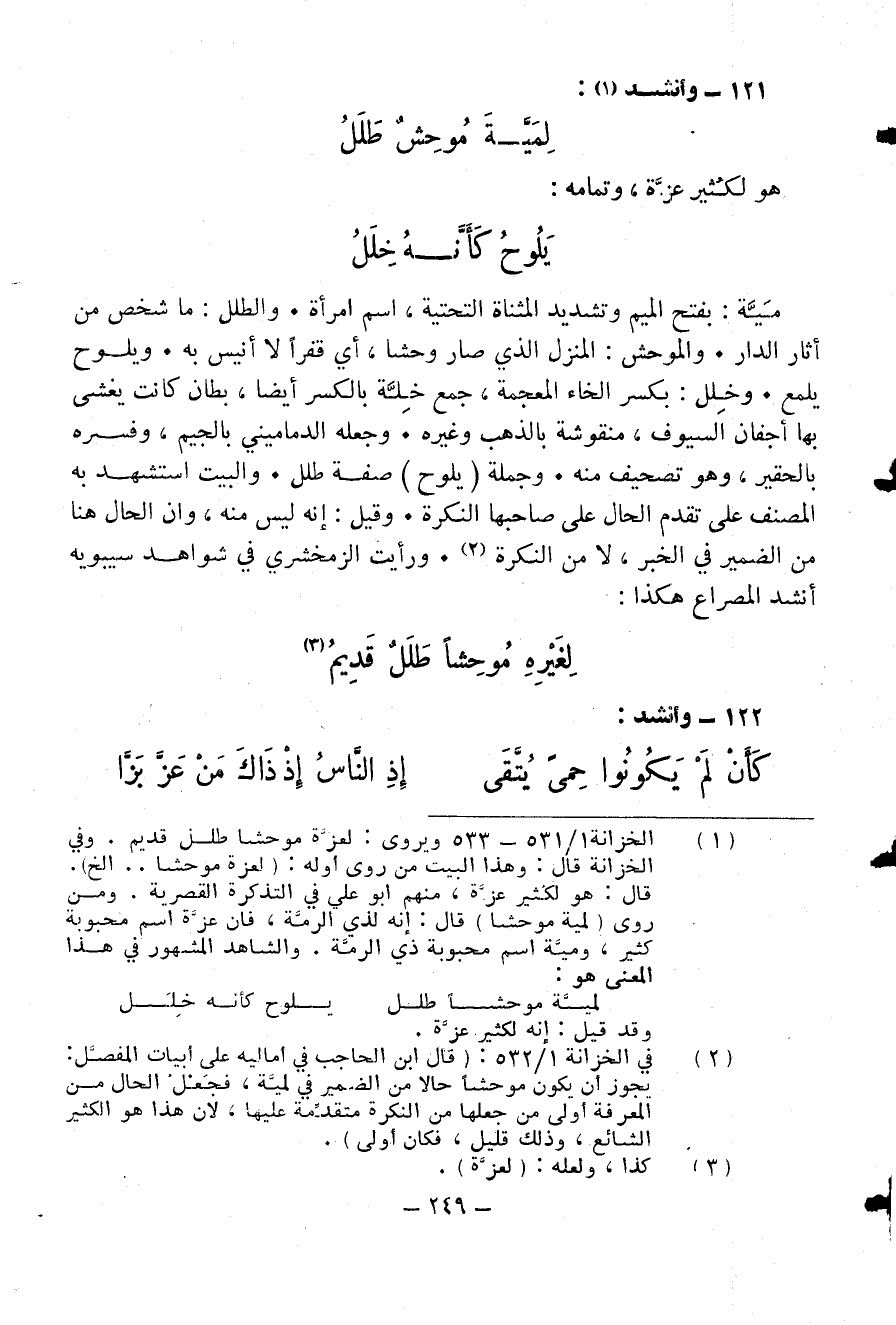 (¬1) الخزانة 1/ 531 - 533 ويروى: لعزّة موحشا طلل قديم. وفي الخزانة قال: وهذا البيت من روى أوله: (لعزة موحشا .. الخ).