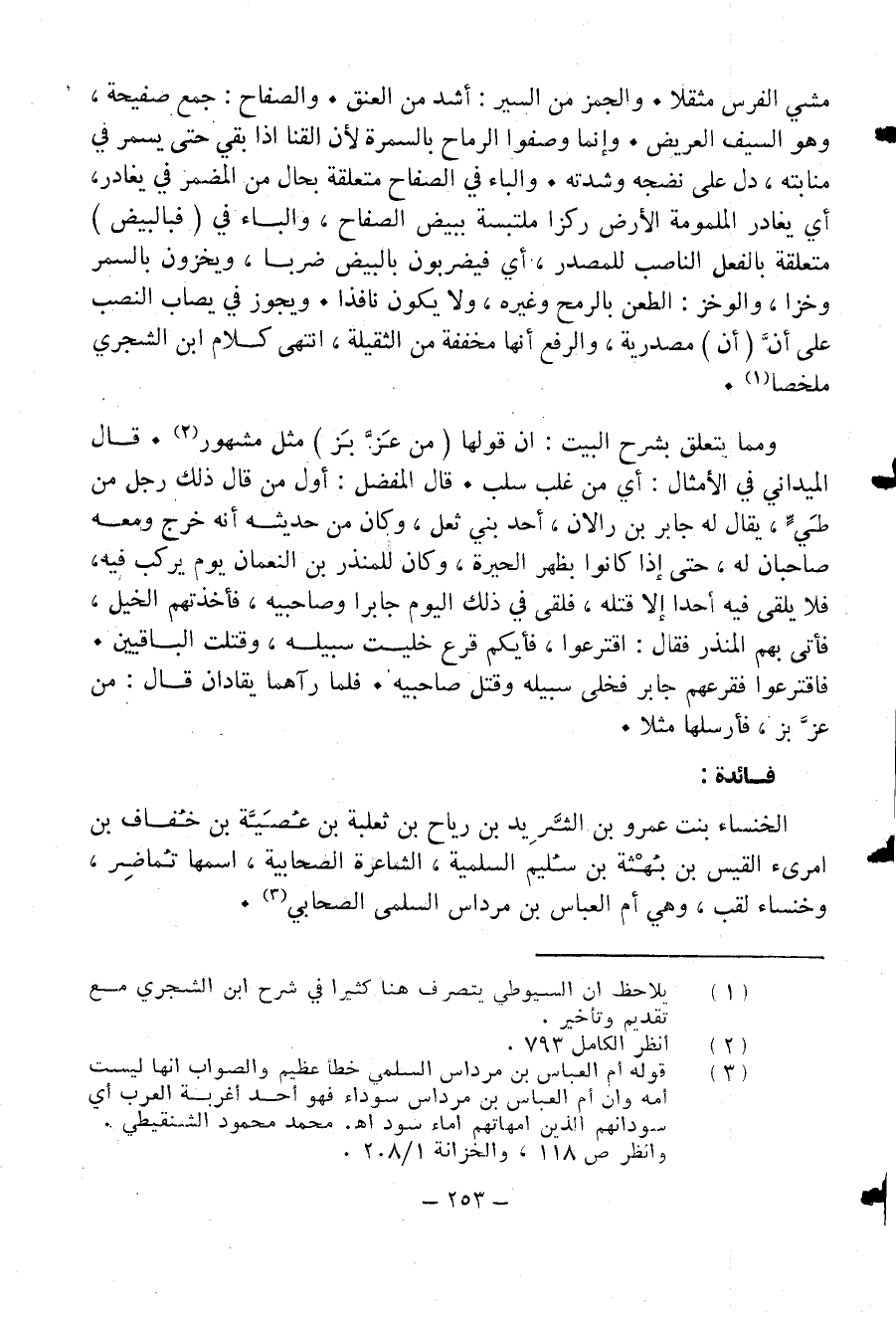(¬3) قوله أم العباس بن مرداس السلمي خطأ عظيم والصواب انها ليست أمه وان أم العباس بن مرداس سوداء فهو أحد أغربة العرب أي سودانهم الذين أمهاتهم أماء سود اه. محمد محمود الشنقيطي.