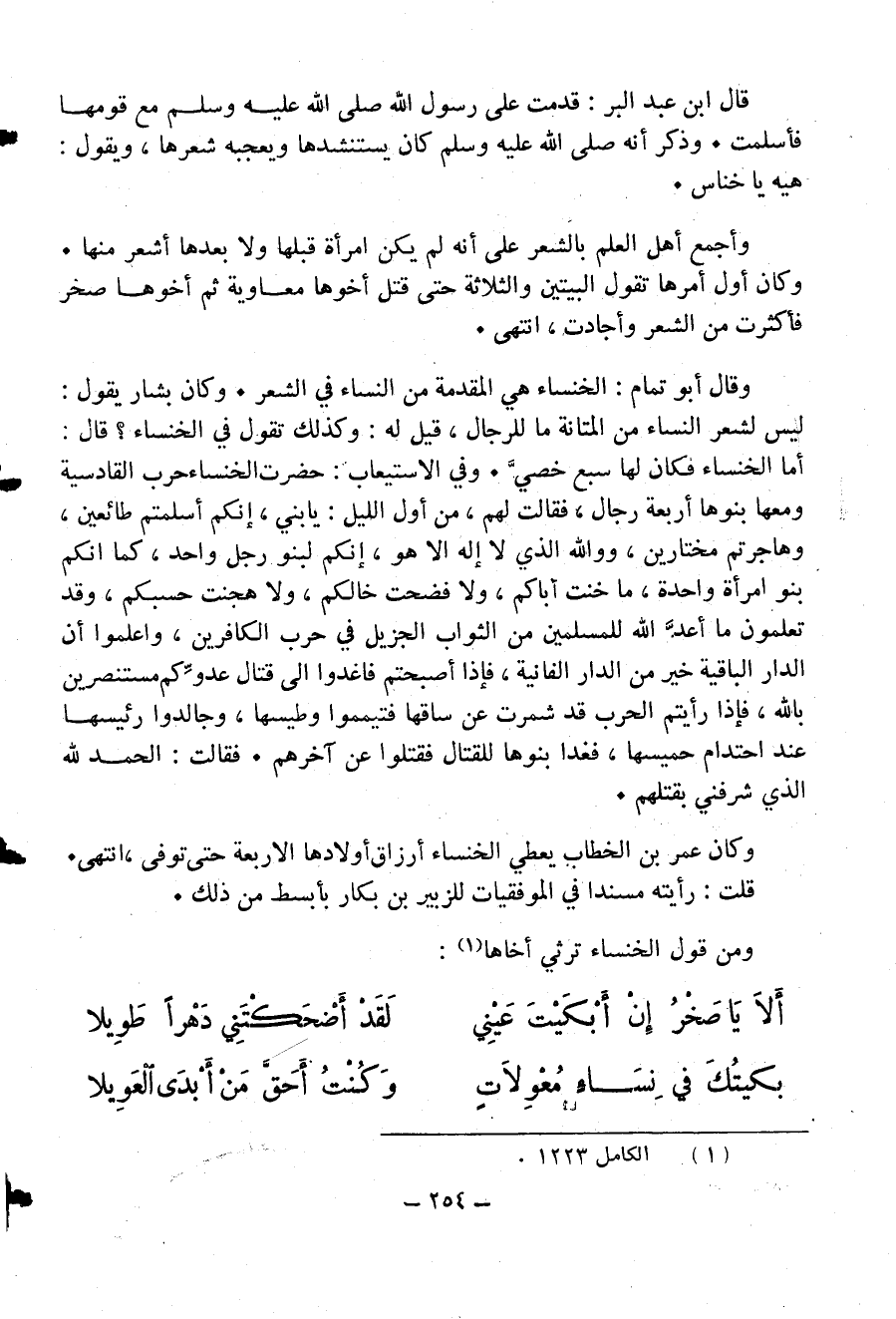 وأجمع أهل العلم بالشعر على أنه لم يكن امرأة قبلها ولا بعدها أشعر منها.