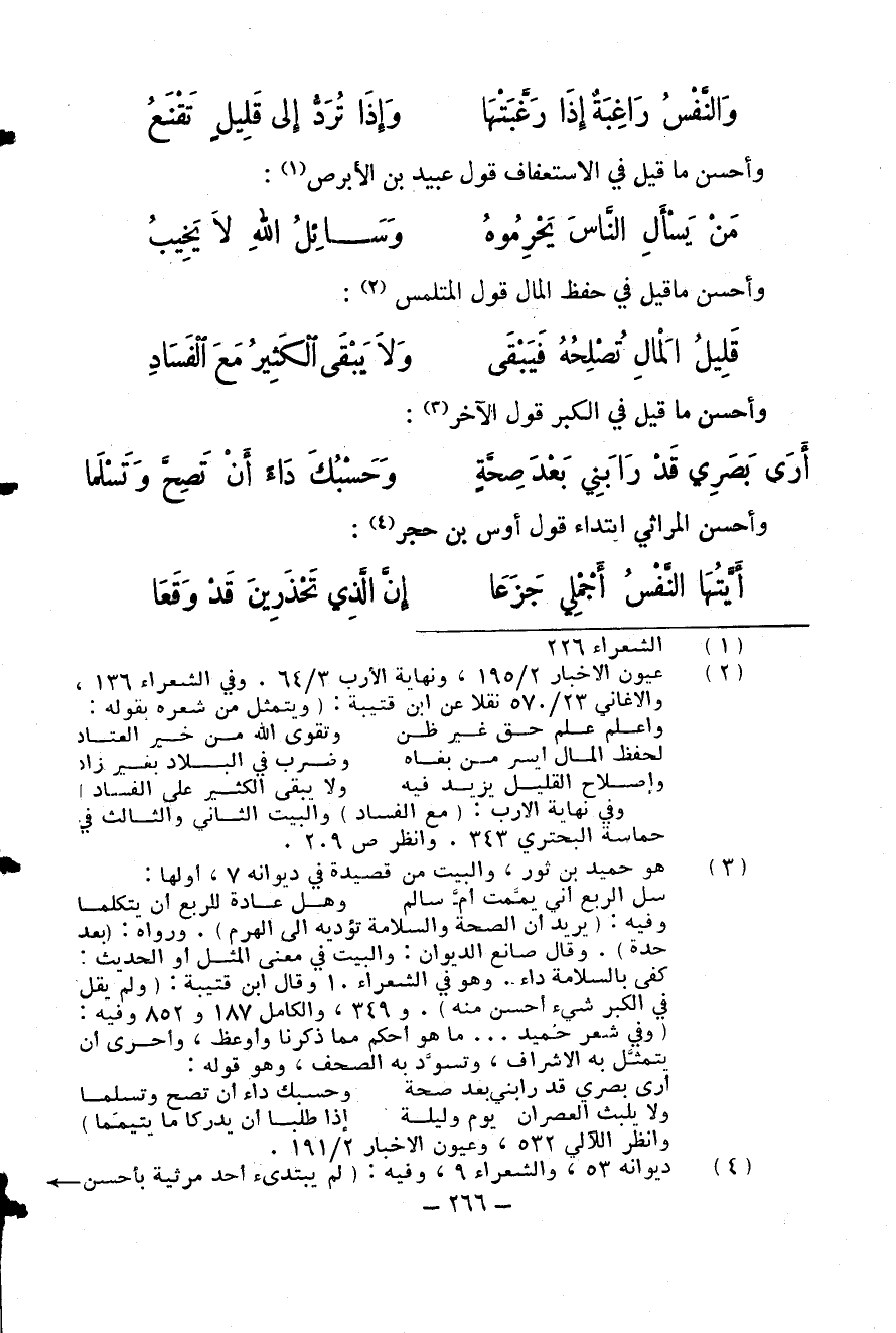 (وفي شعر حميد ... ما هو أحكم مما ذكرنا وأوعظ، وأحرى أن يتمثّل به الاشراف، وتسوّد به الصحف، وهو قوله: